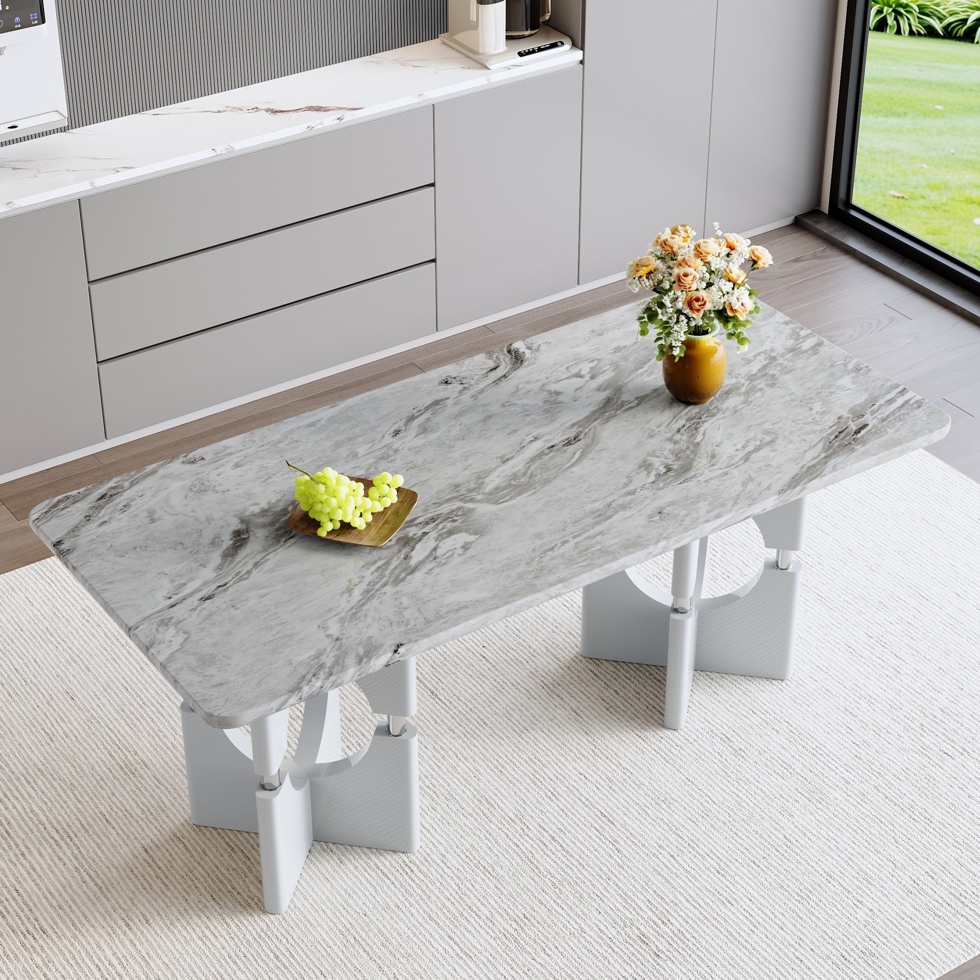 Modern Marble Pattern MDF Dining Table with Hollow-Out Frame for Small Spaces