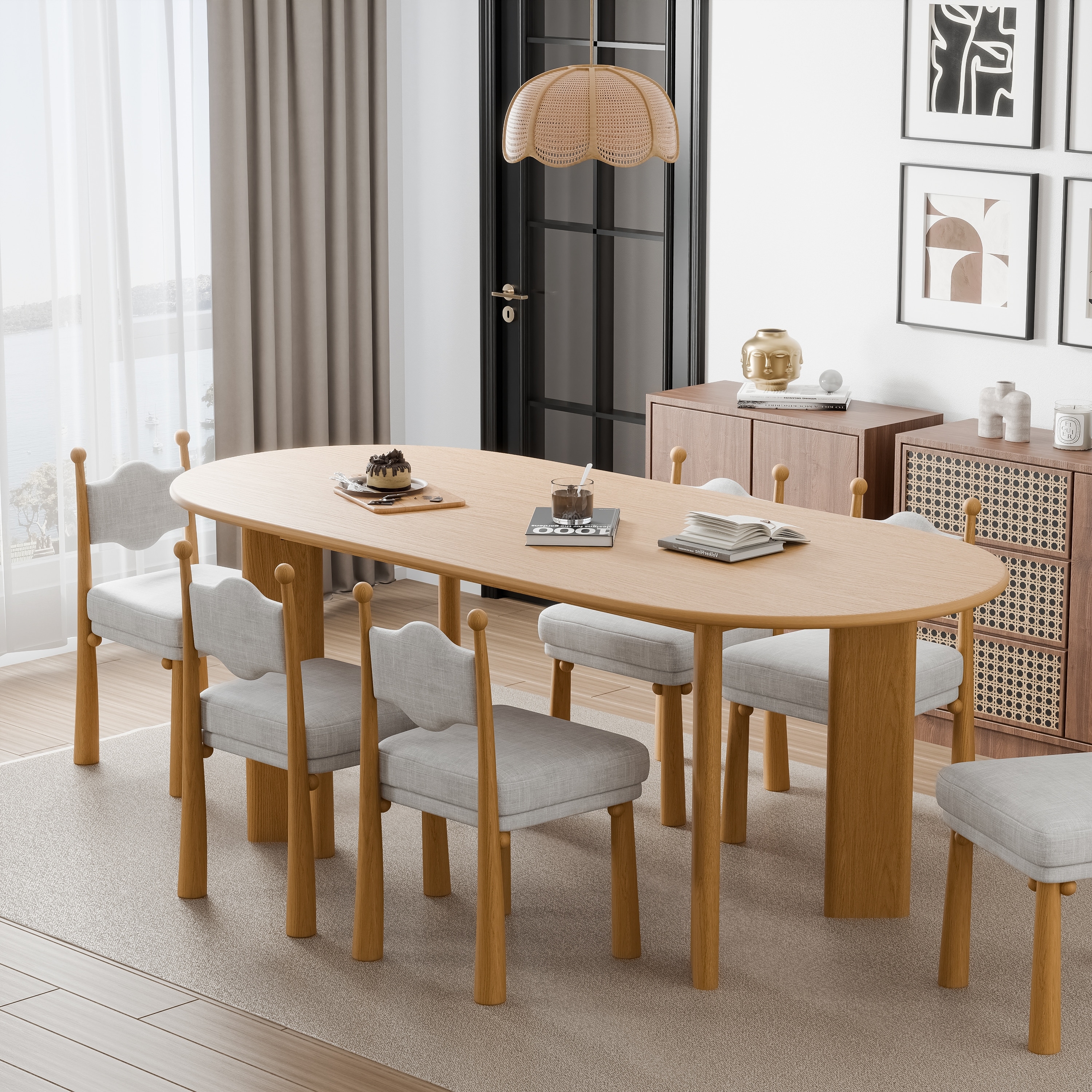 Solid Wood Farmhouse Dining Table Oval Wood Top for Modern Dining Rooms & Family Gatherings