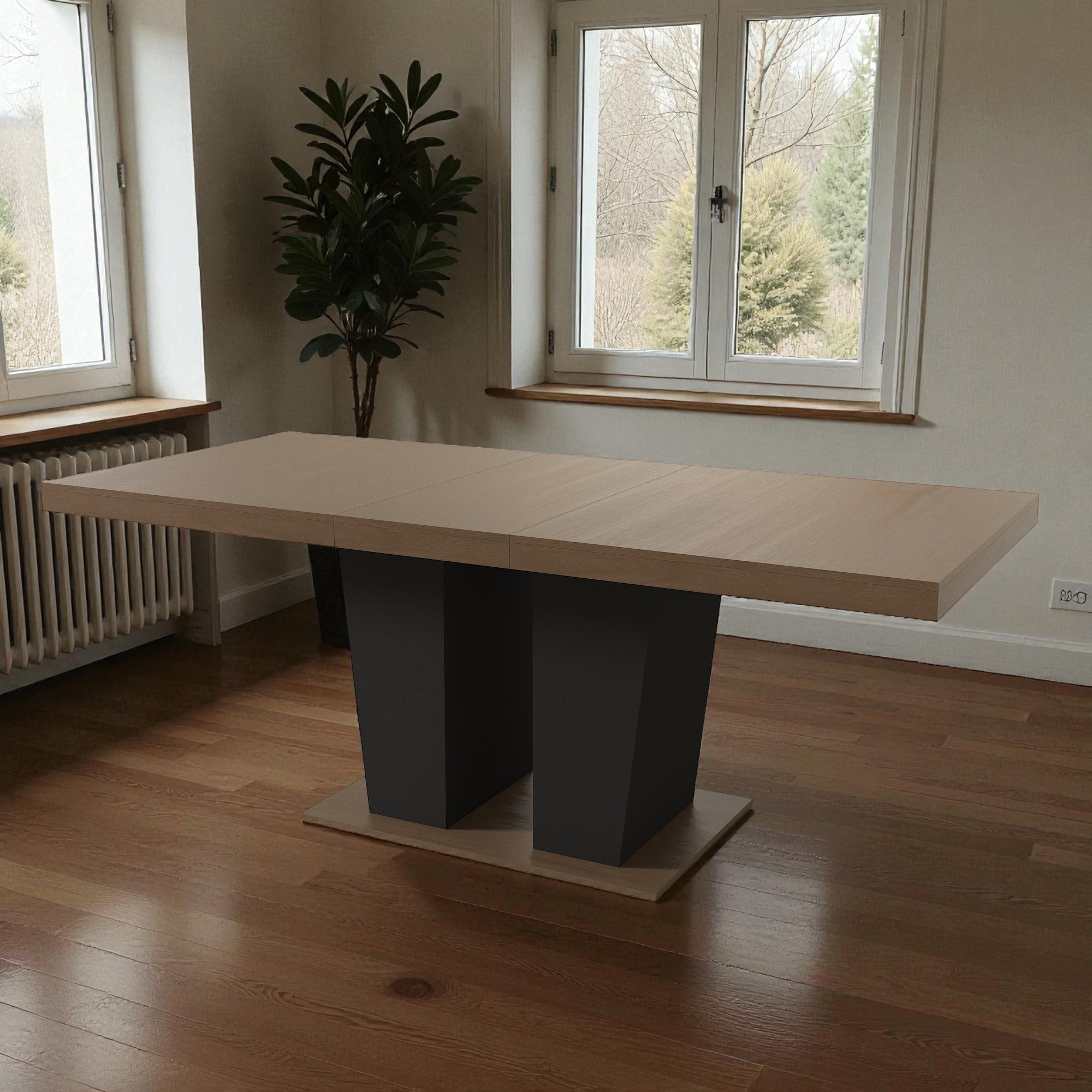 Extendable Dining Table for 4-10, Wooden Modern Transformer Table with Double Pedestal Base, Expandable Kitchen Dining Table
