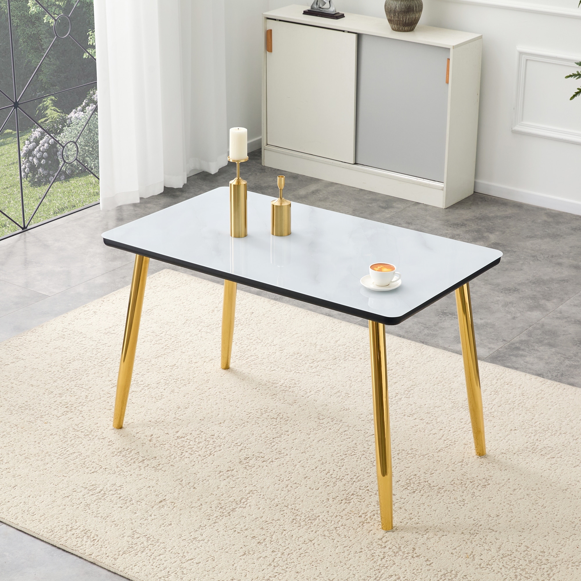 Modern Minimalist Dining Table with Tempered Glass Top and Metal Legs
