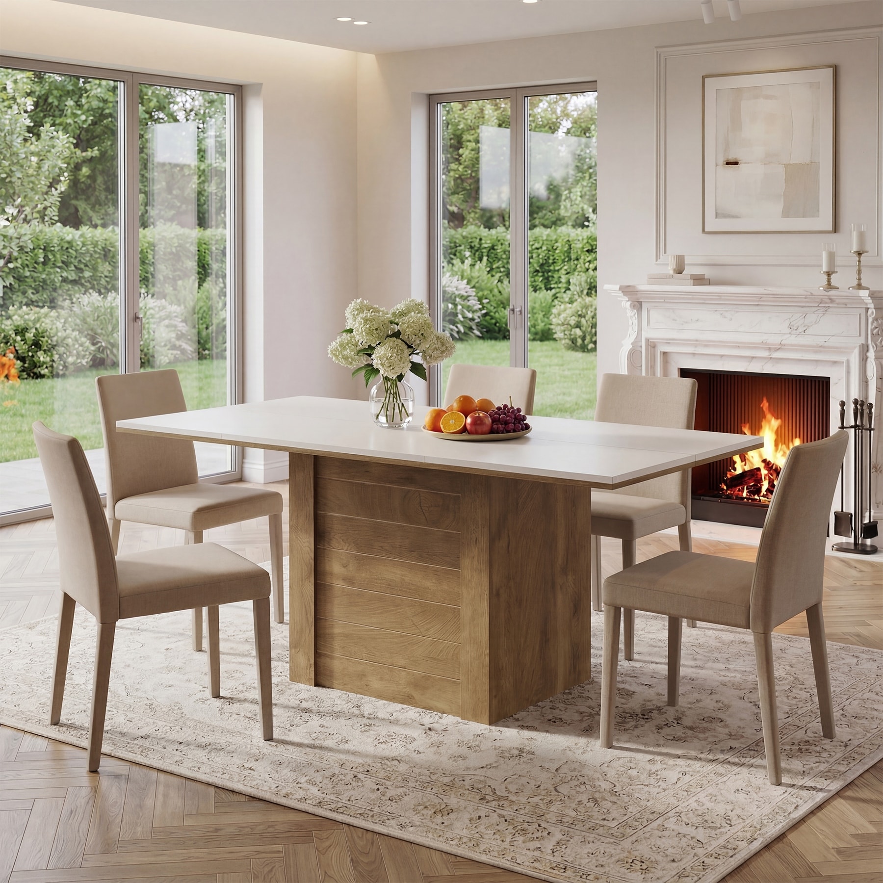 Modern Square Dining Table, Stretchable, X-Shape Table Leg with Metal Base