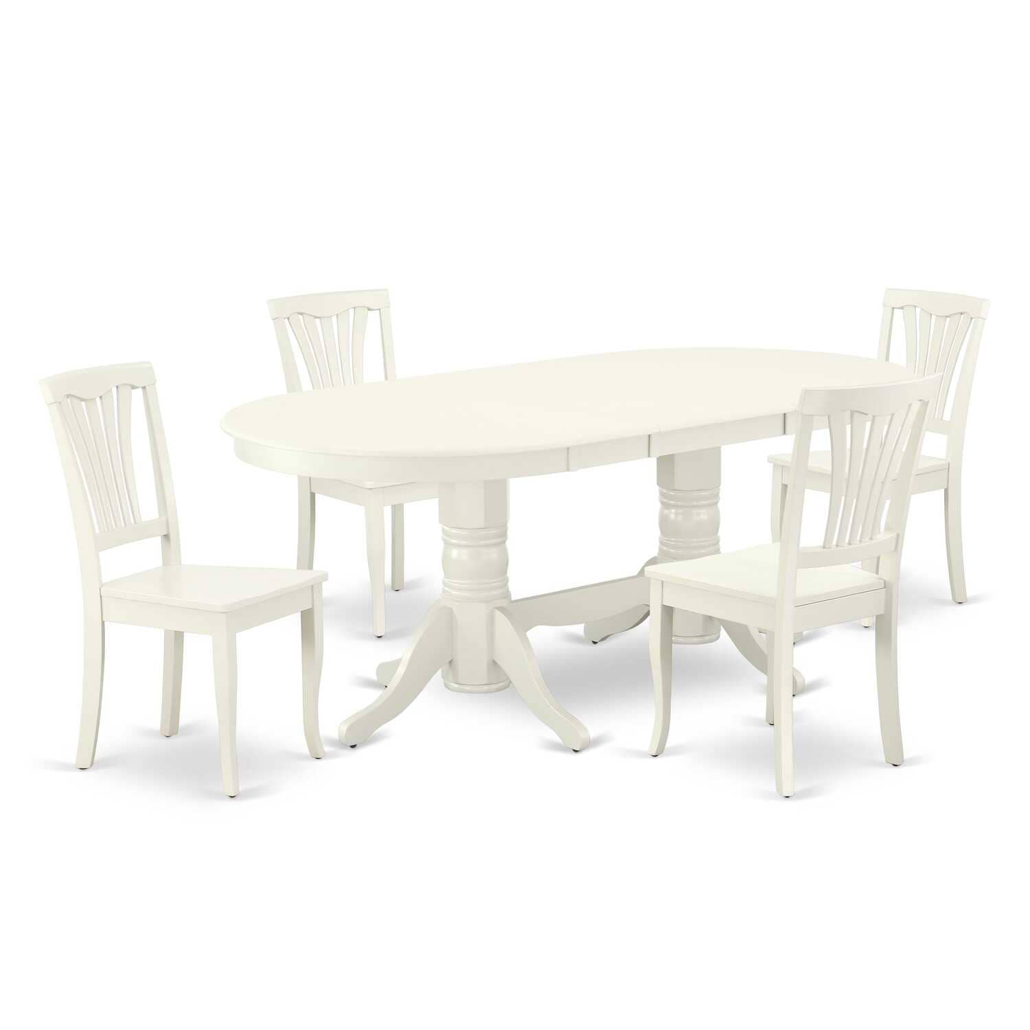 5-Piece Kitchen Dining Set - Table with Butterfly Leaf & 4 Chairs - Linen White - 76