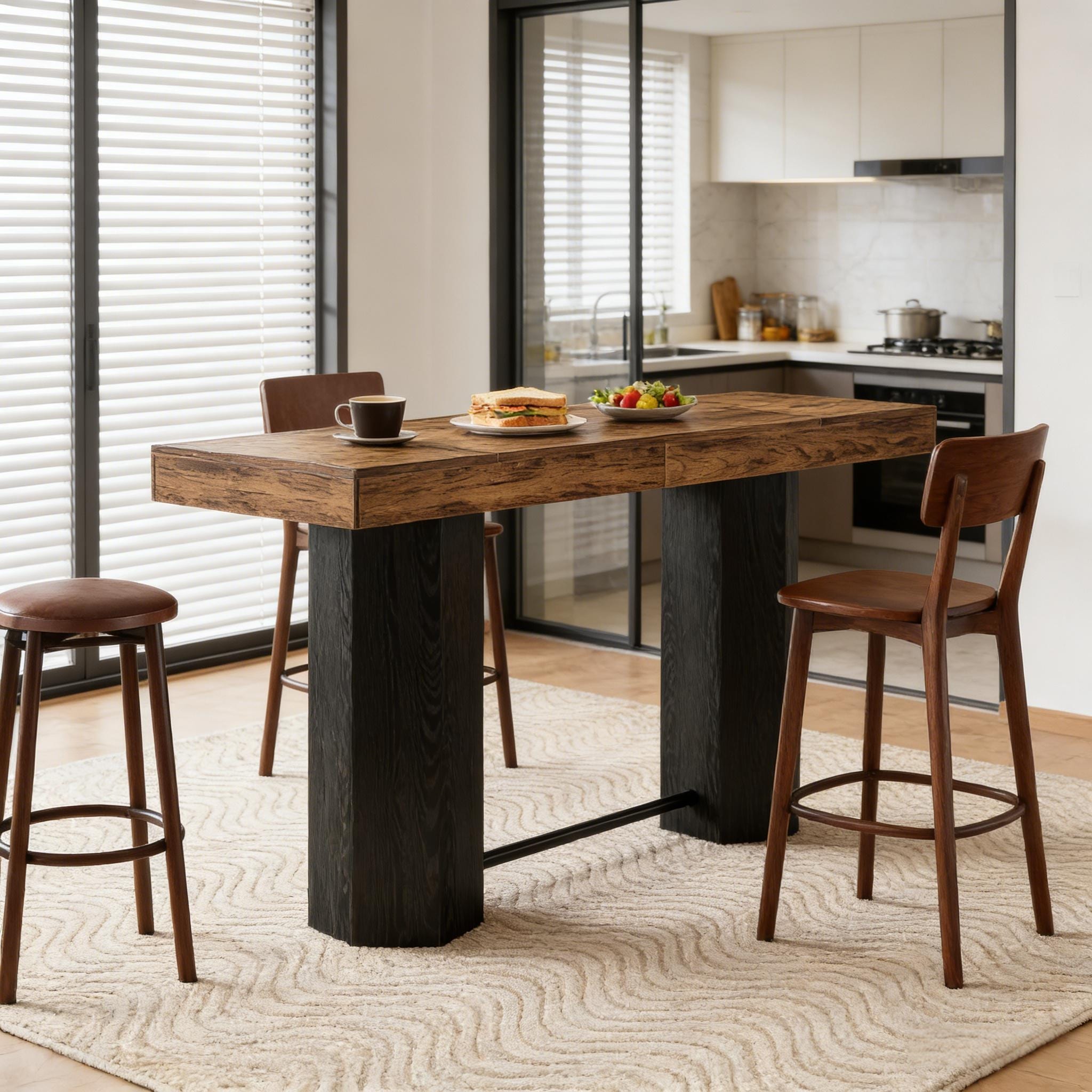 Home Bar Height Table Dining Table, Coffee Table for 4-6 People, Woodgrain Kitchen Table with Hexagonal Base