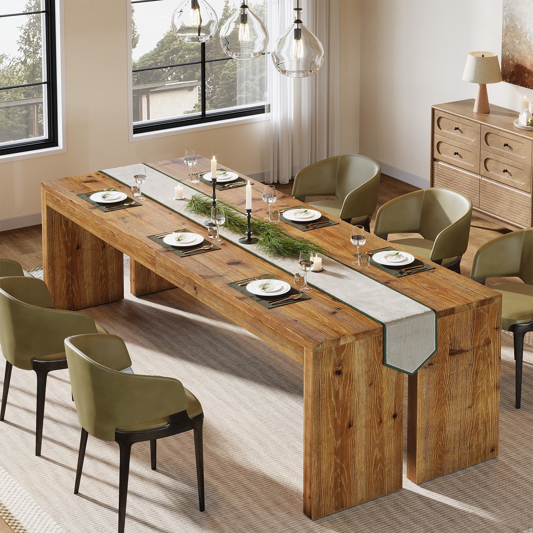 78.7-Inch Solid Wood Dining Table, Kitchen Table for 6-8 People