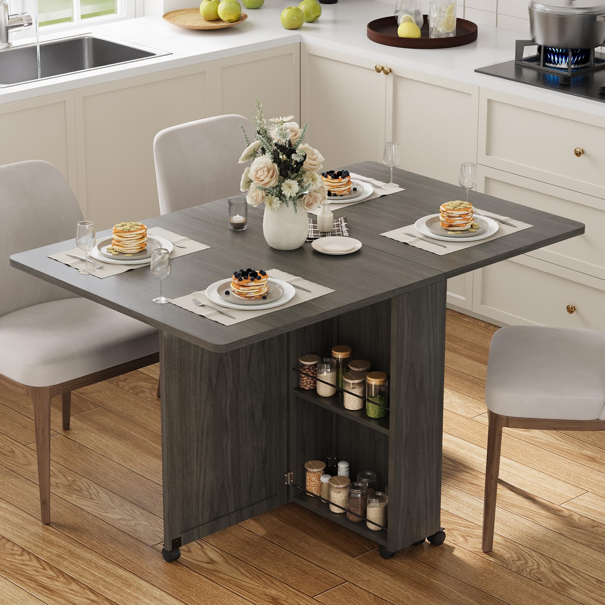 Folding Dining Table with Storage, Folding Kitchen Table with Drawers, Apartments, Small Spaces