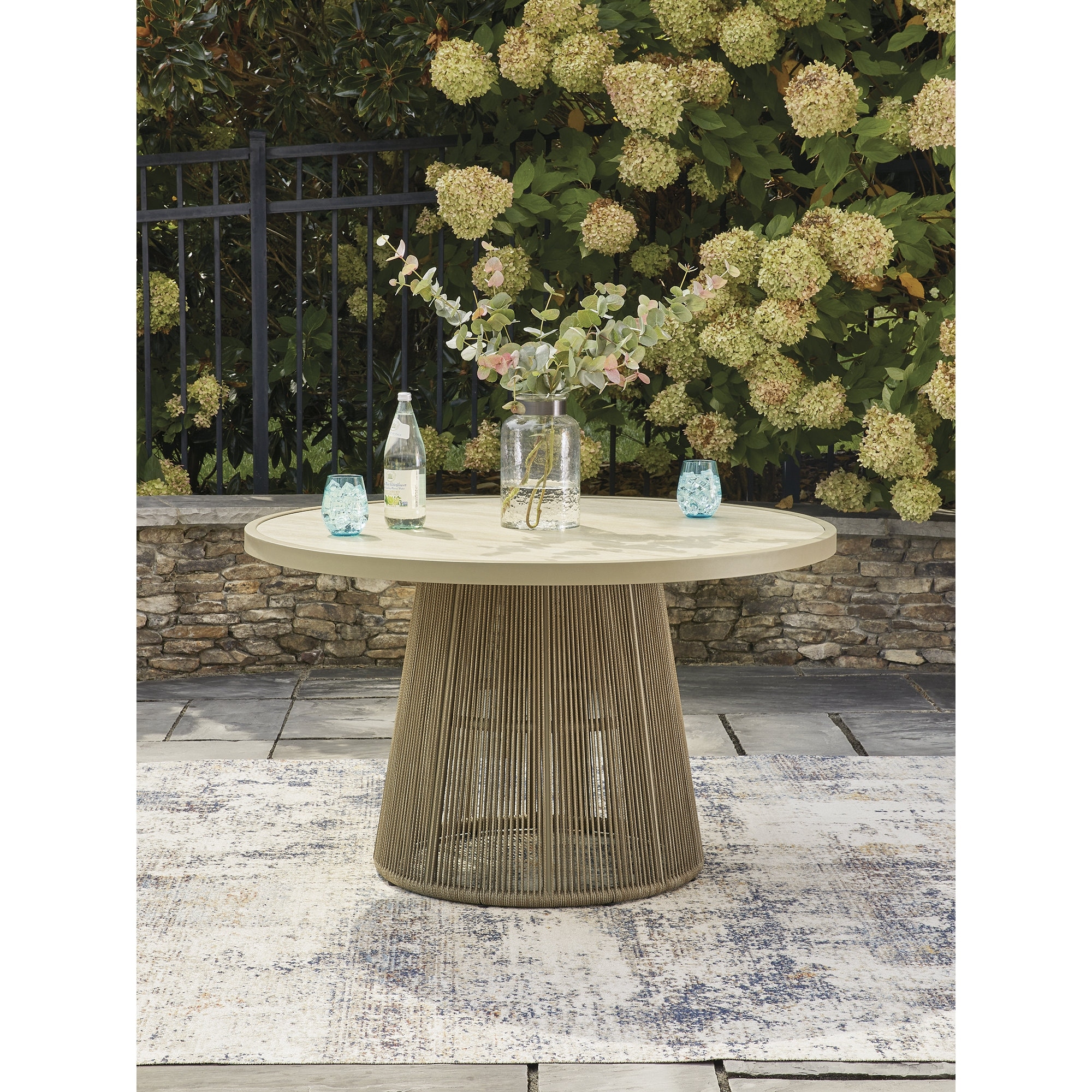 Signature Design by Ashley Ocean Park Brown/Beige Outdoor Dining Table - 48.75" W x 48.75" D x 29" H