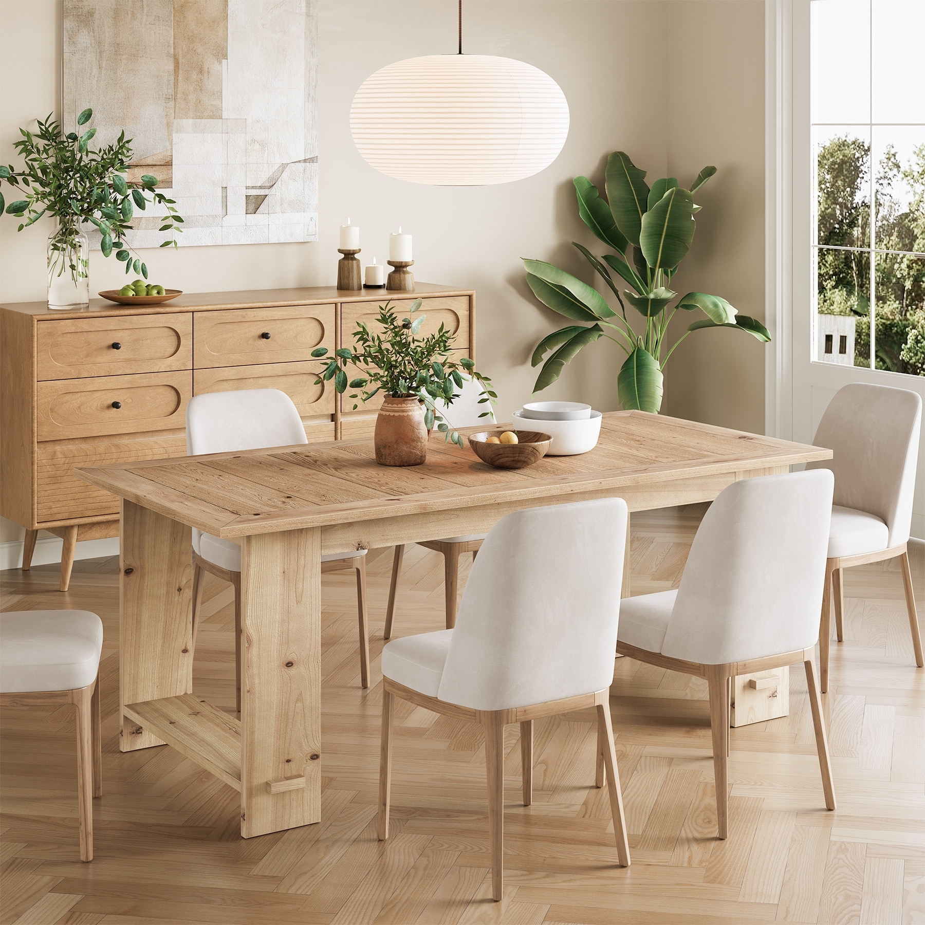 47-inch Round Dining Table Wood Dinner Table for 4-6 People