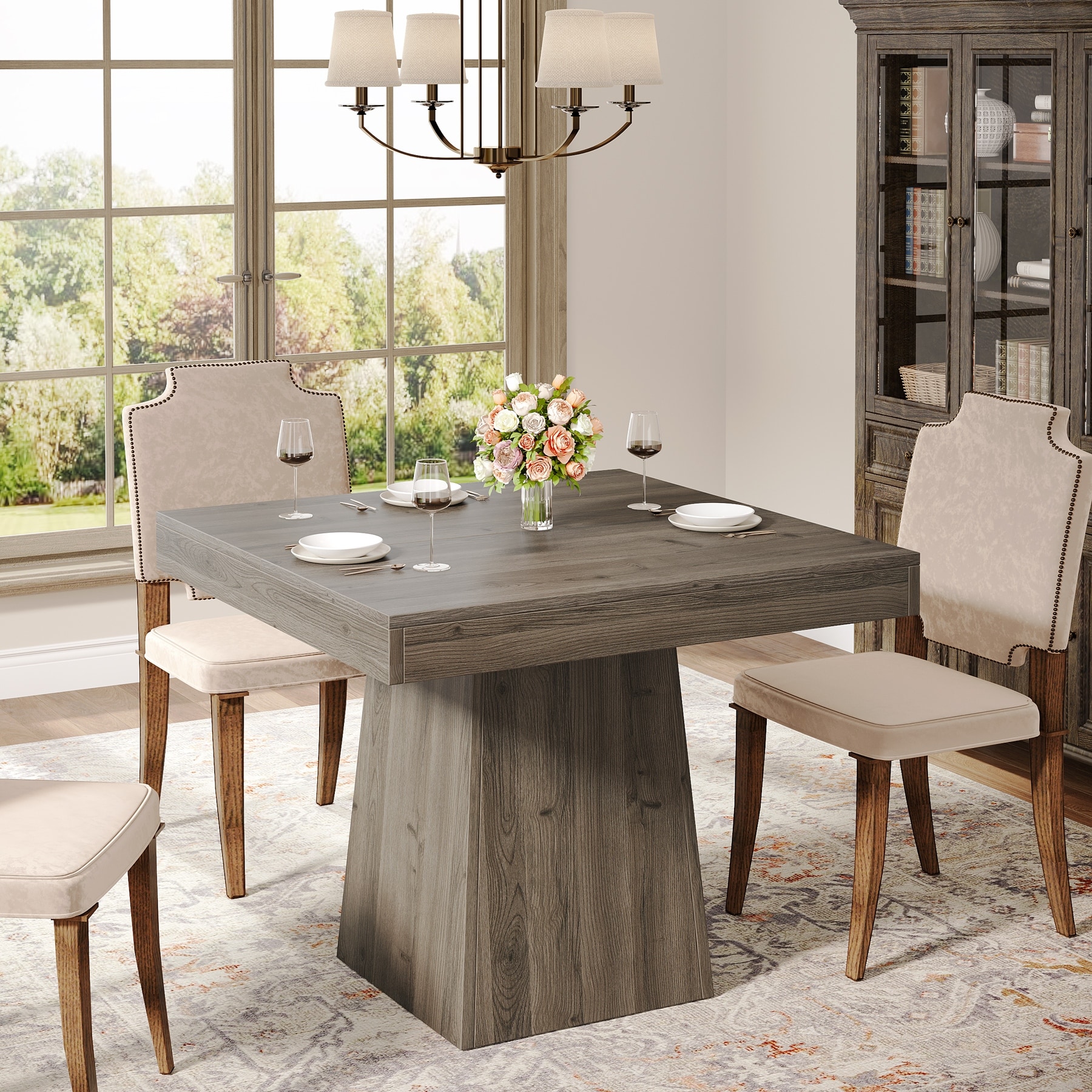 Square Dining Table for 4, 31.5-Inch Kitchen Table with Pedestal Base - 31.5"D x 31.5"W x 29.53"H