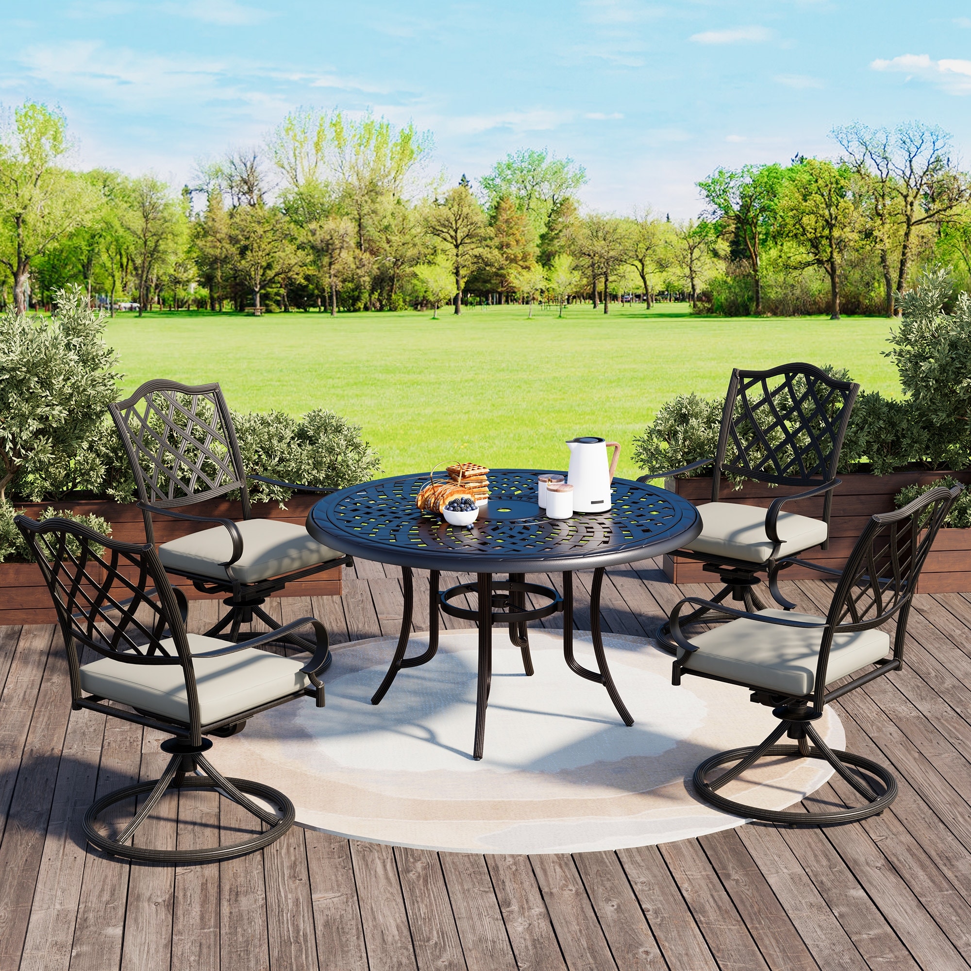 Clihome 51" Patio Round Cast Aluminum Dining Table with Umbrella Hole