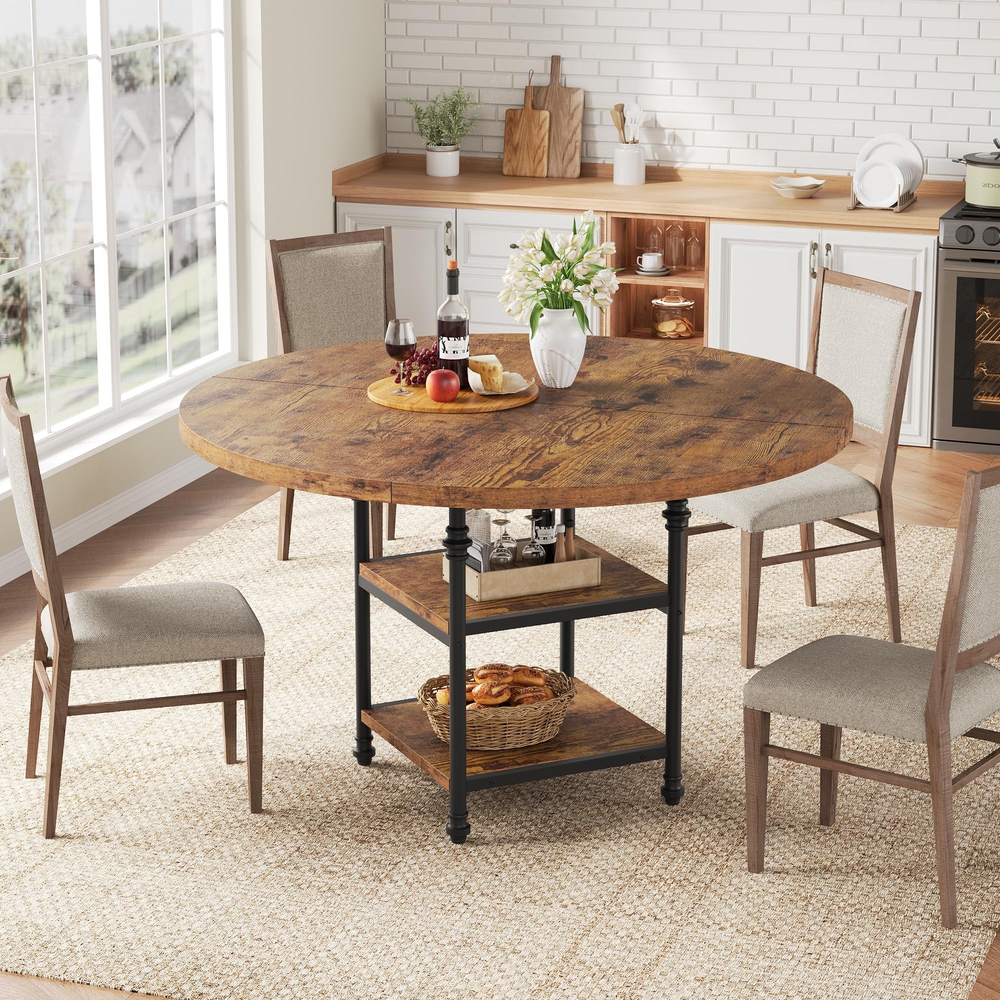 Roman Column Round Dining Table for 4-6 - 1.2'' Thick MDF Top with Built-in Storage - Metal Base