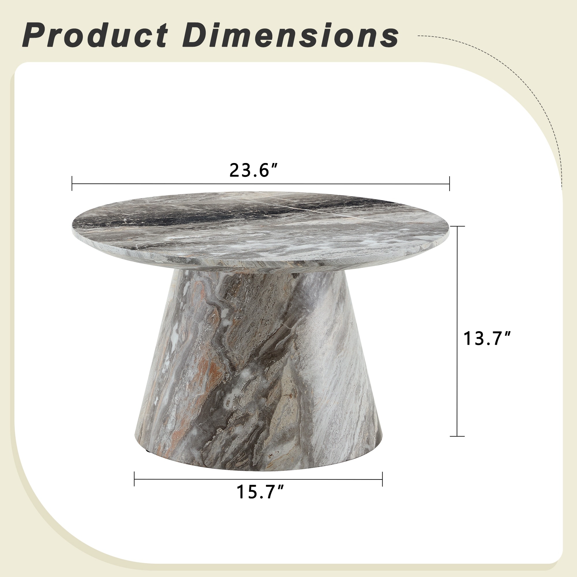 Grey textured medium density fiberboard circular coffee table - diameter 23.6 inches (Not Including Chair)
