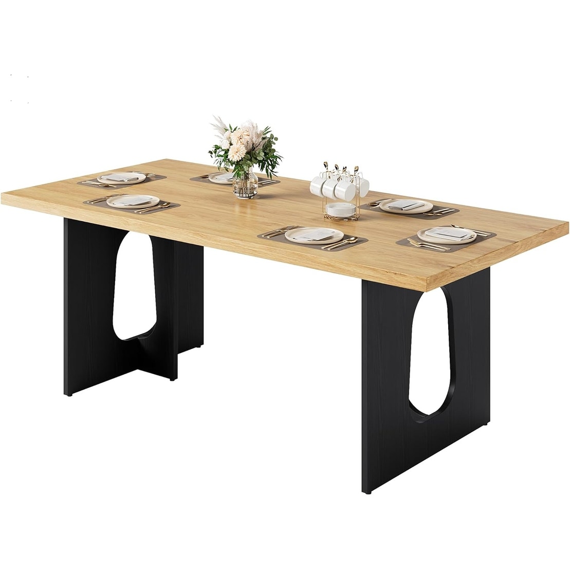 71" Farmhouse Long Dining Table for 6-10 People - Extra Thick Tabletop & Heavy-Duty Metal Legs,Natural Wood