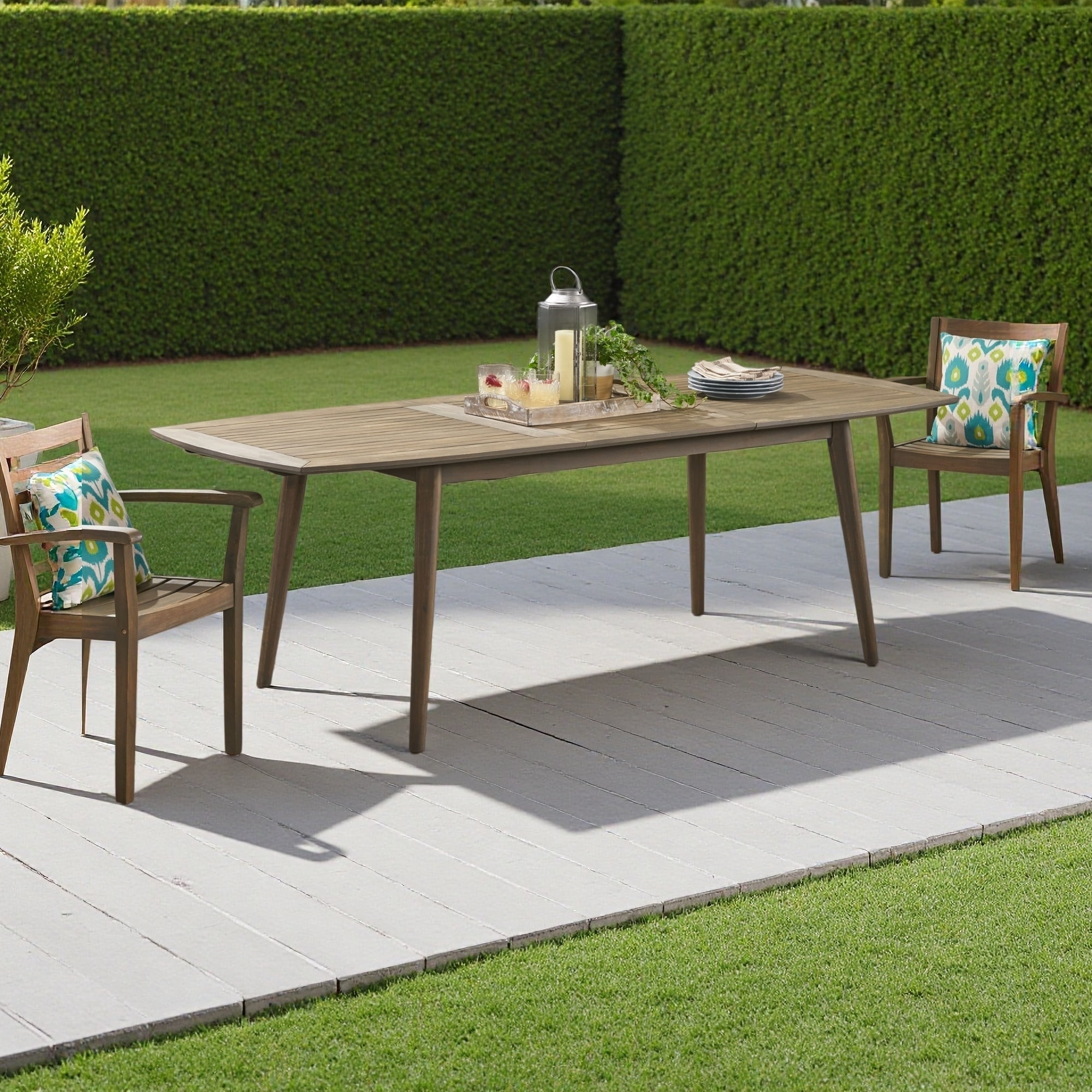 Outdoor Acacia Wood Expandable Dining Table with Slatted Tabletop