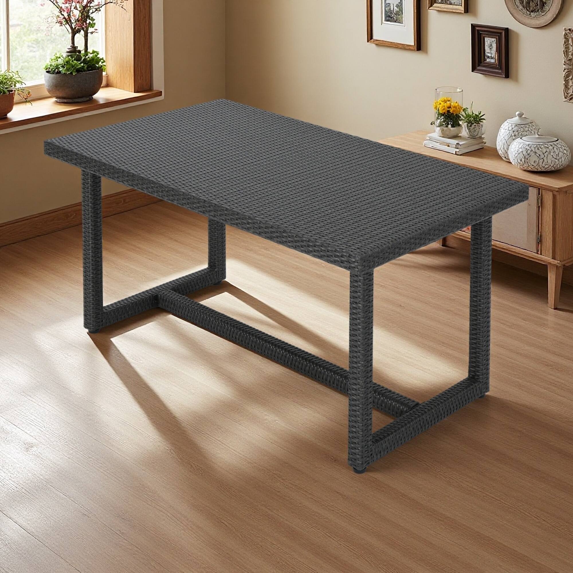 Outdoor Dining Table with Rectangular Tabletop and Sturdy Frame for Yard, Garden
