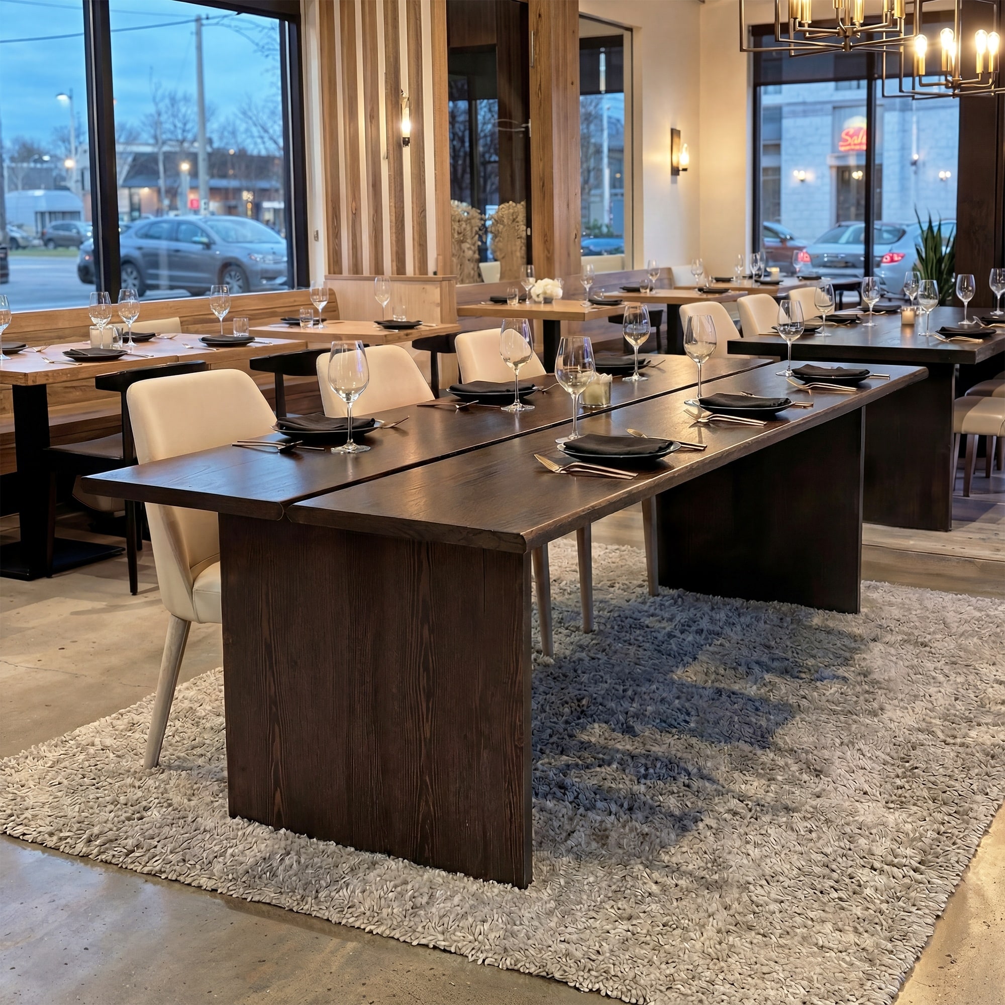 Cylindrical Polygonal Three Color Round Edge Dining Table