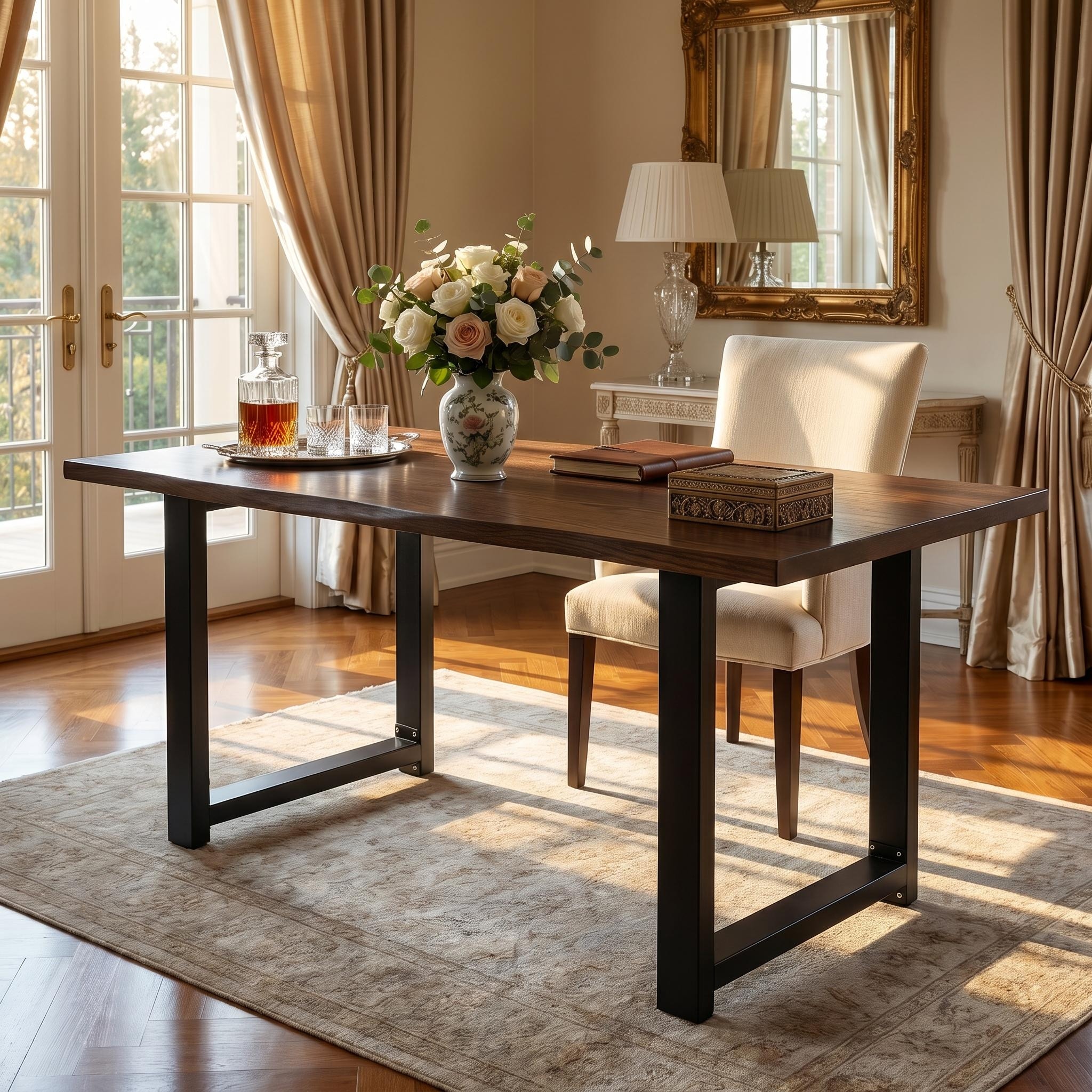 Solid Wood & Iron Dining Table 63 Inch, Wave Edge Wood Top Industrial Kitchen Tablefor Dining Room, Home Office Desk