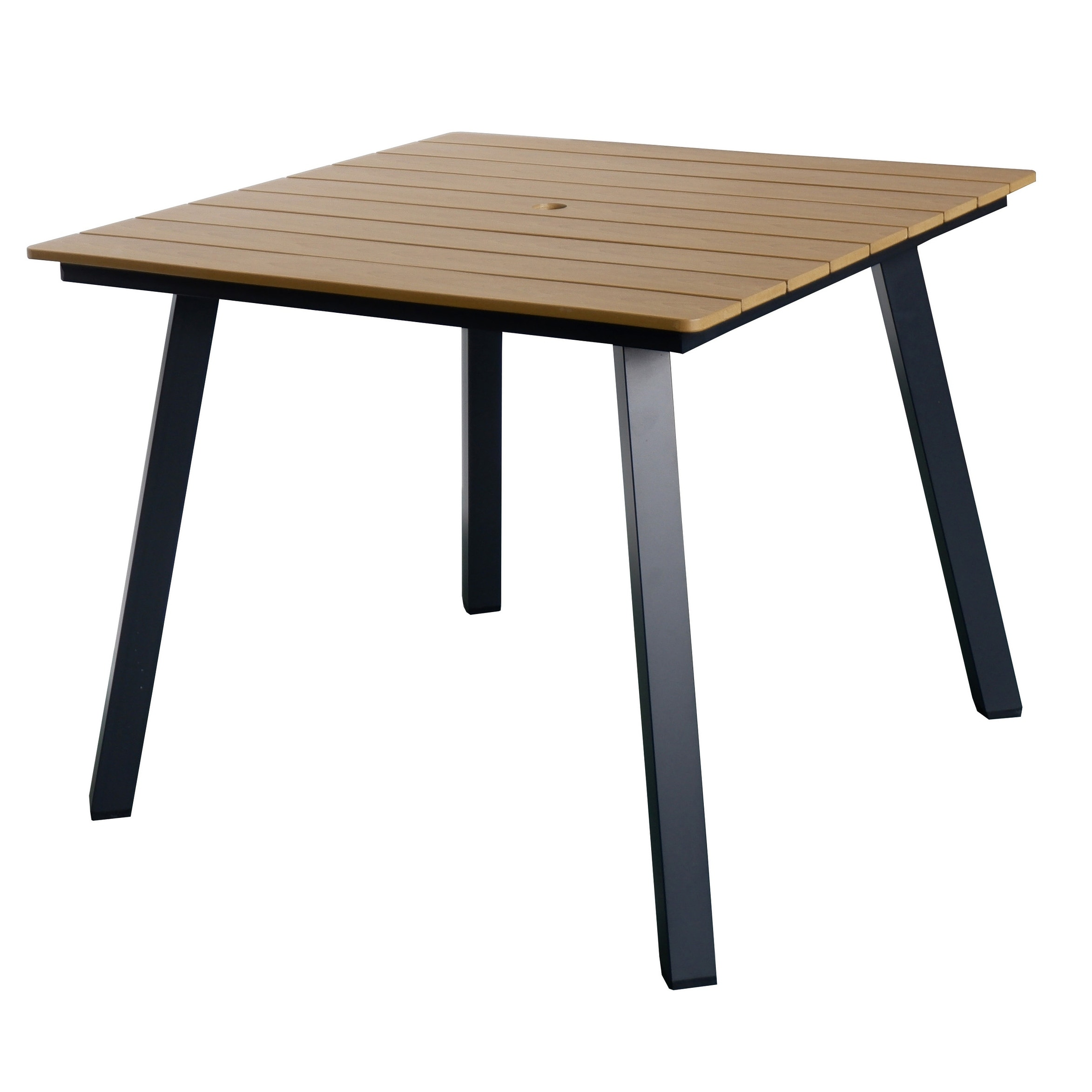 Square Patio Dining Table with Umbrella Hole,Heavy-Duty Iron Frame Wood-Plastic Composite Tabletop