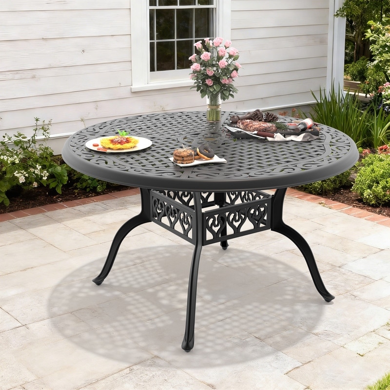 48.03 inch Black Round Cast Aluminum Patio Table with Umbrella Hole