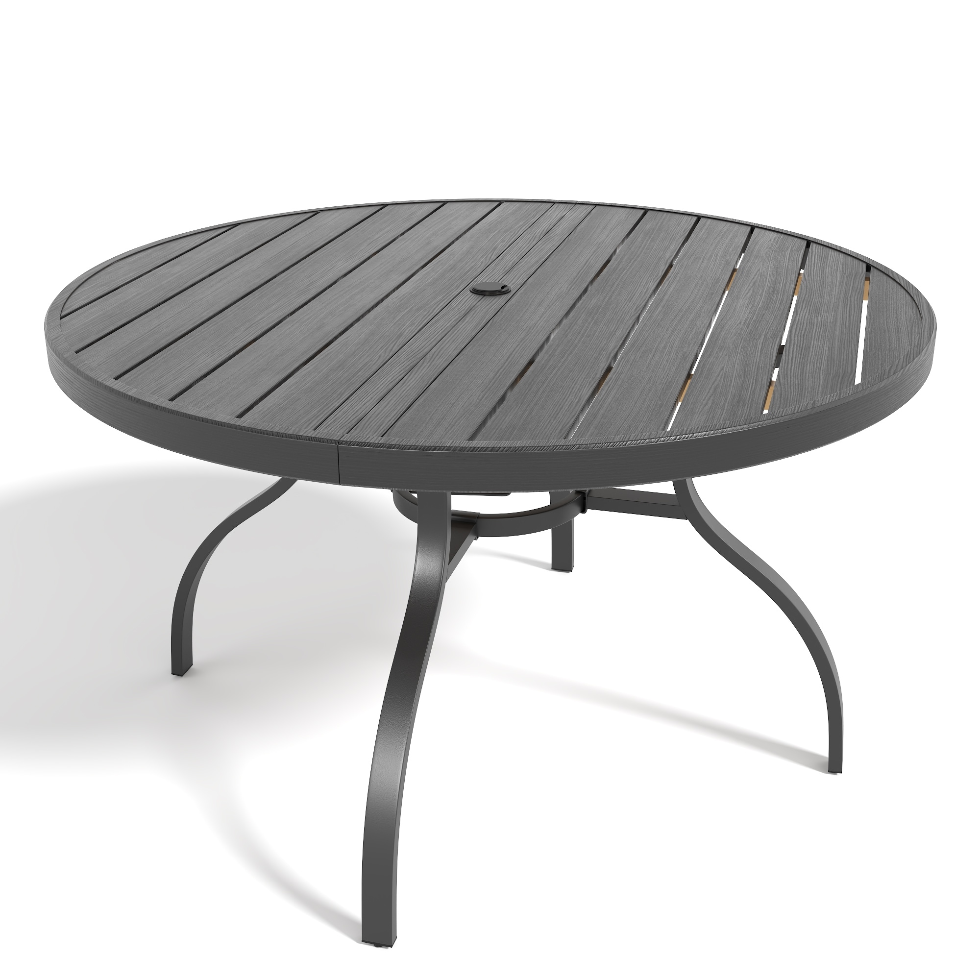 Round Faux Wood Slat Patio Table 41"with Umbrella Hole, Realistic Wood Grain Top + High-Quality Iron Legs, Rust-Resistant