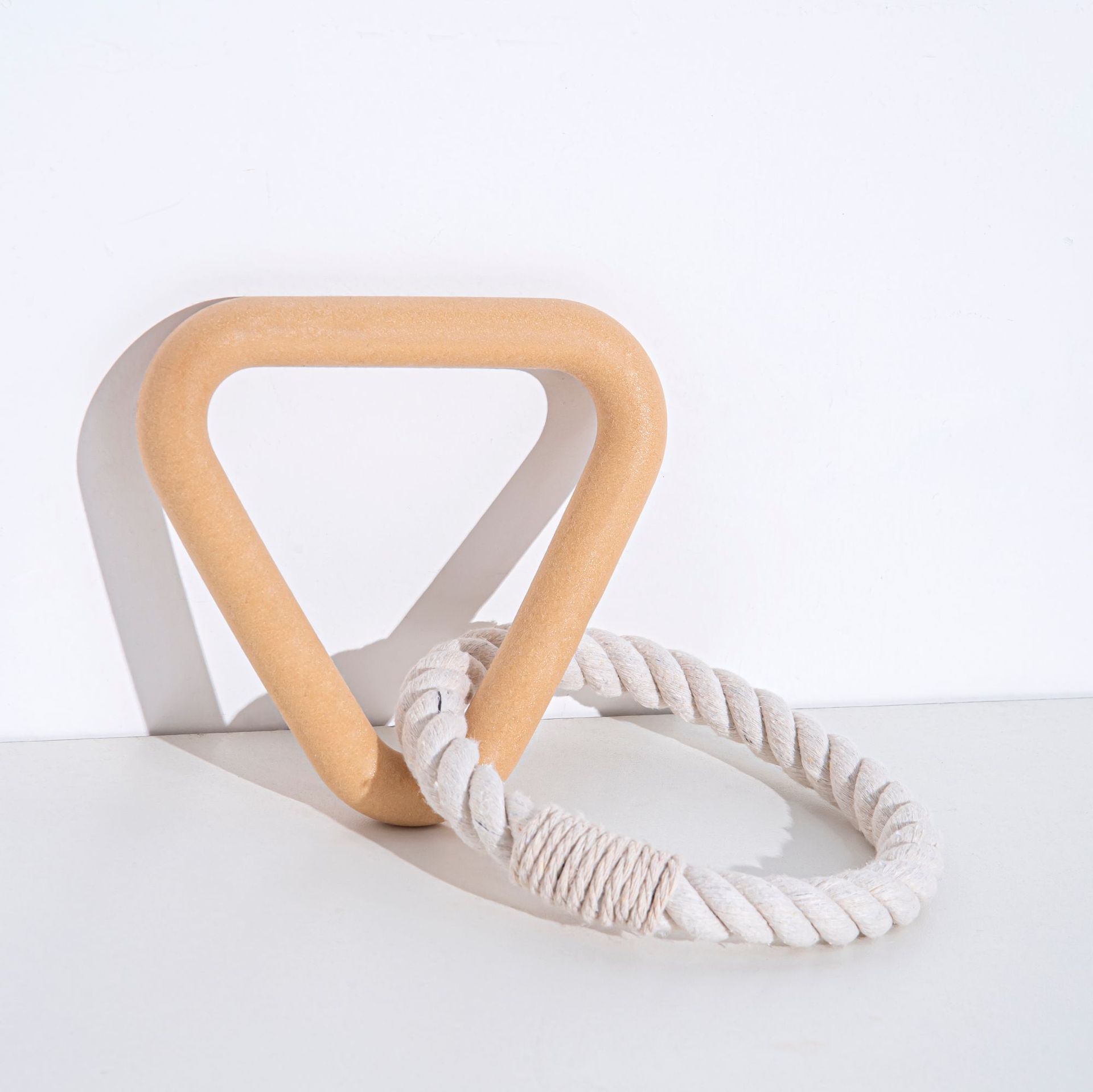 TPR Rubber Pet Toys: Triangle Pull Ring & Cotton Rope Chew Resistant Dog Toy Interactive Tug Of War Toy yellow S