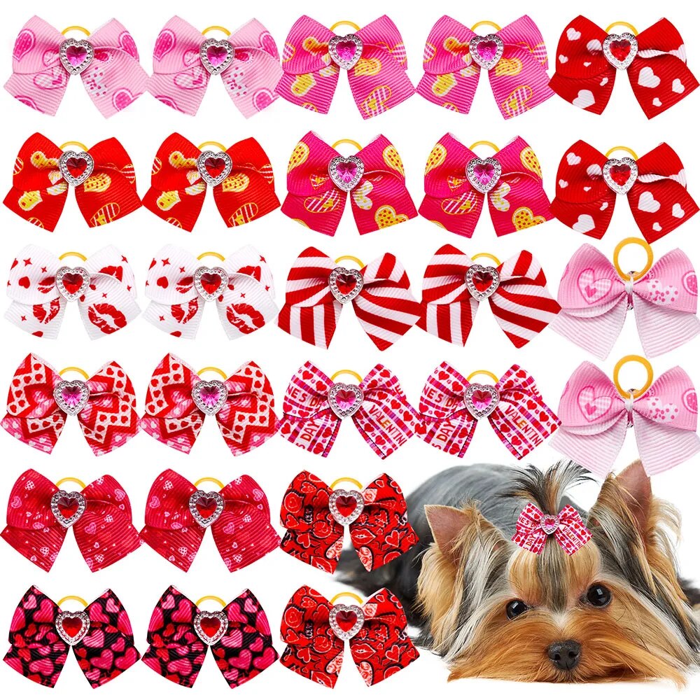Red Pink Series Dog Bows: Valentine's Day Cute Cat Dog Accessories MIX