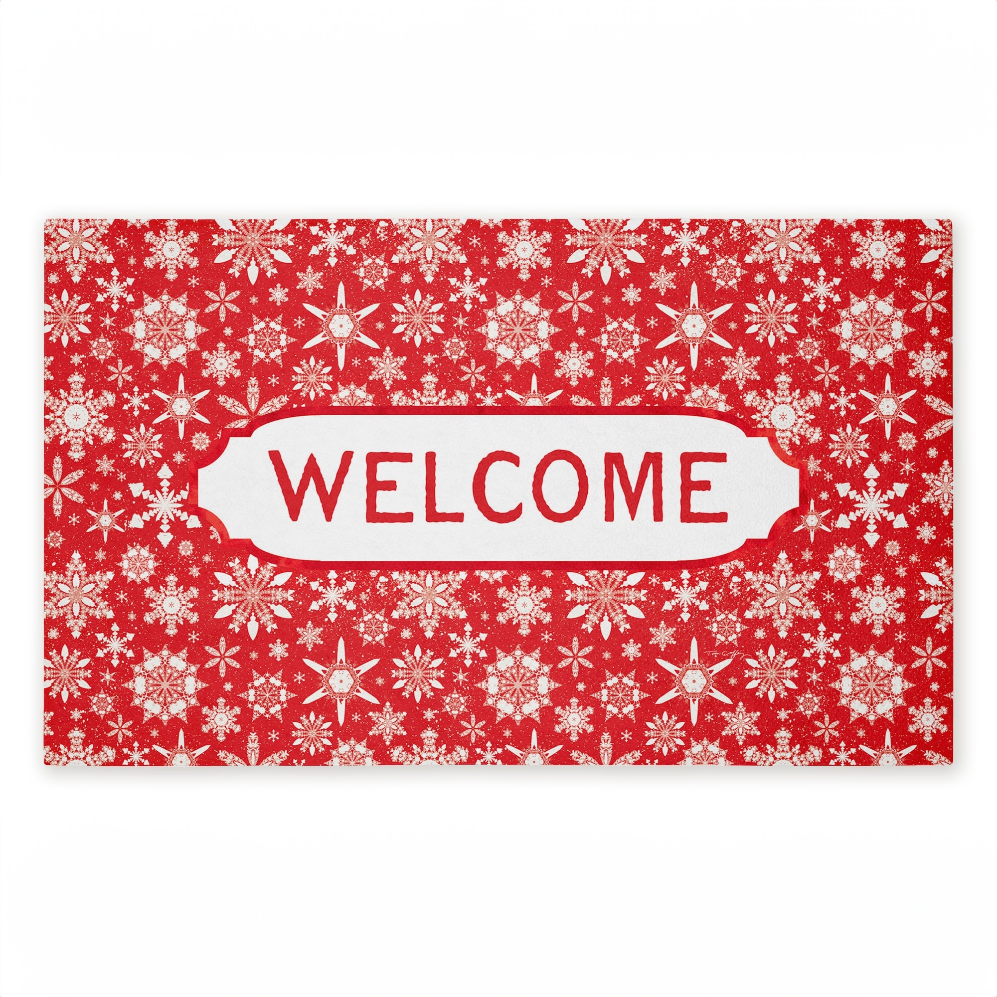 Stupell Welcome Red Snowflake Fractals Printed Outdoor Door Mat, design by Tim Coffey, 18"x30"