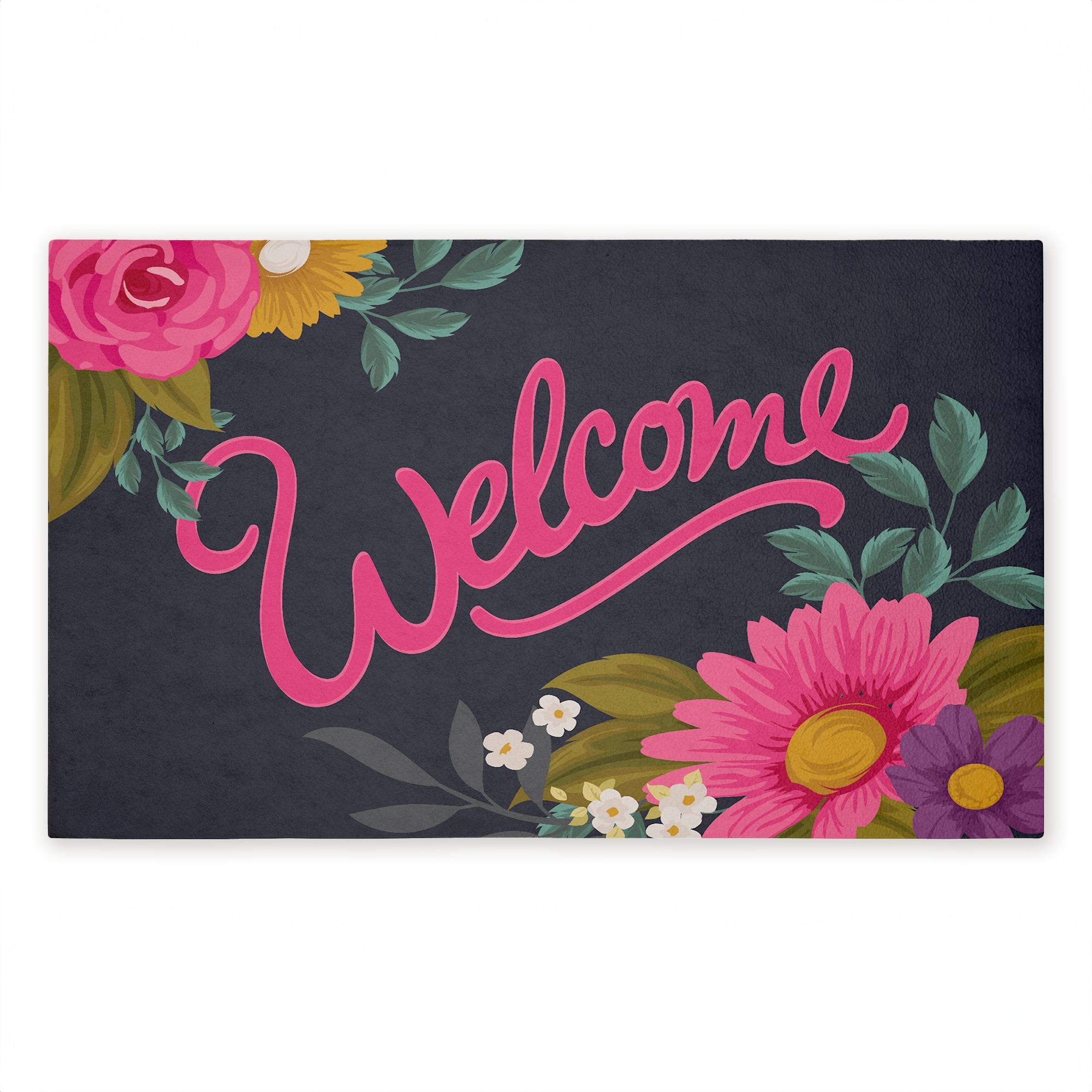 Stupell Lovely Pink Flower Welcome Printed Outdoor Door Mat, design by Angela Nickeas, 18"x30"