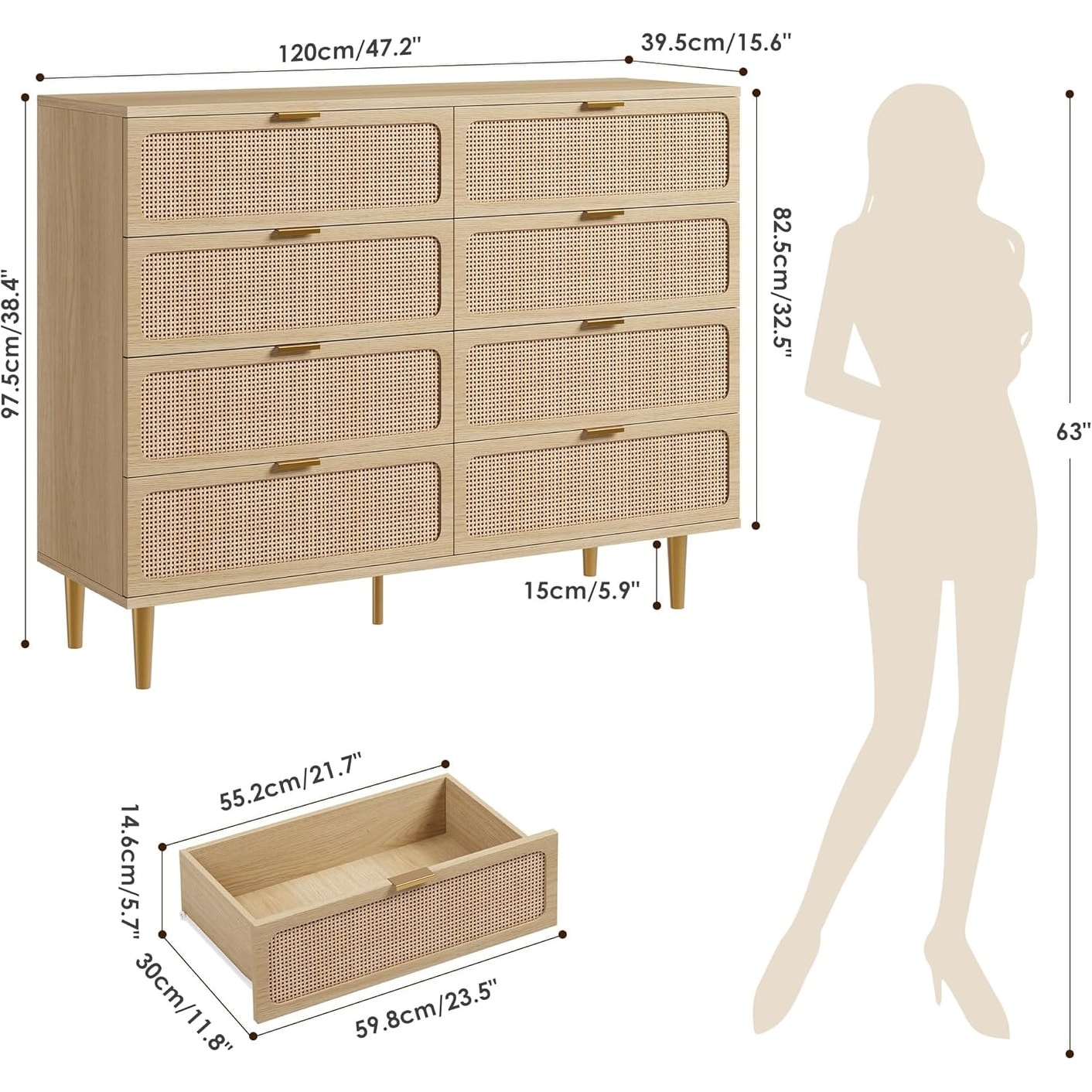Rattan Drawer Dresser Tall Modern Closet Deep Storage for Bedroom