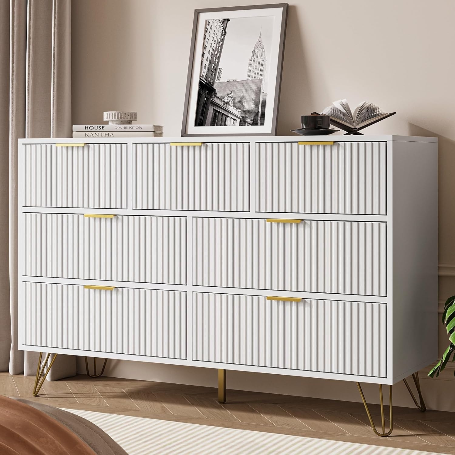 FURNIWAY Fluted Drawer Dresser for Bedroom