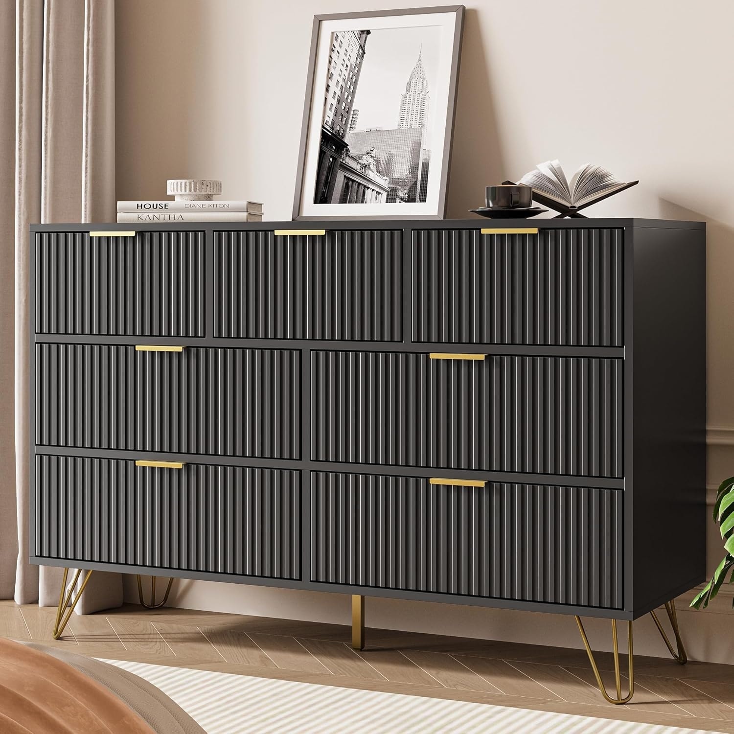 FURNIWAY Fluted Drawer Dresser for Bedroom
