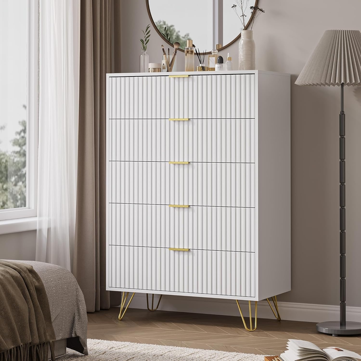 5/6/8 Drawer Fluted Dresser for Bedroom, Modern Chest of Drawers with Handlels