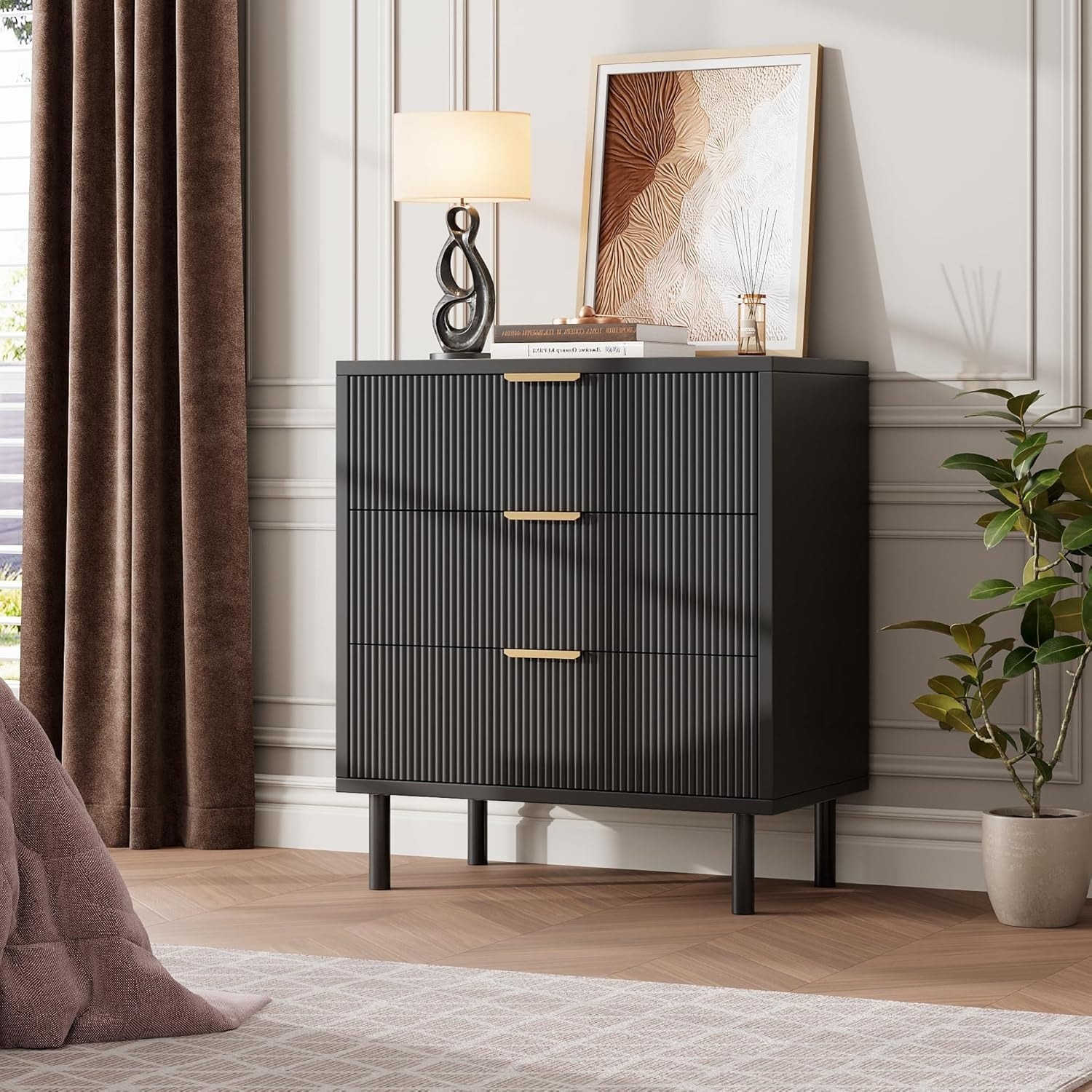 Fluted 3 Drawer Dresser,Wide Chest of Drawers with Anti-Tipping Device