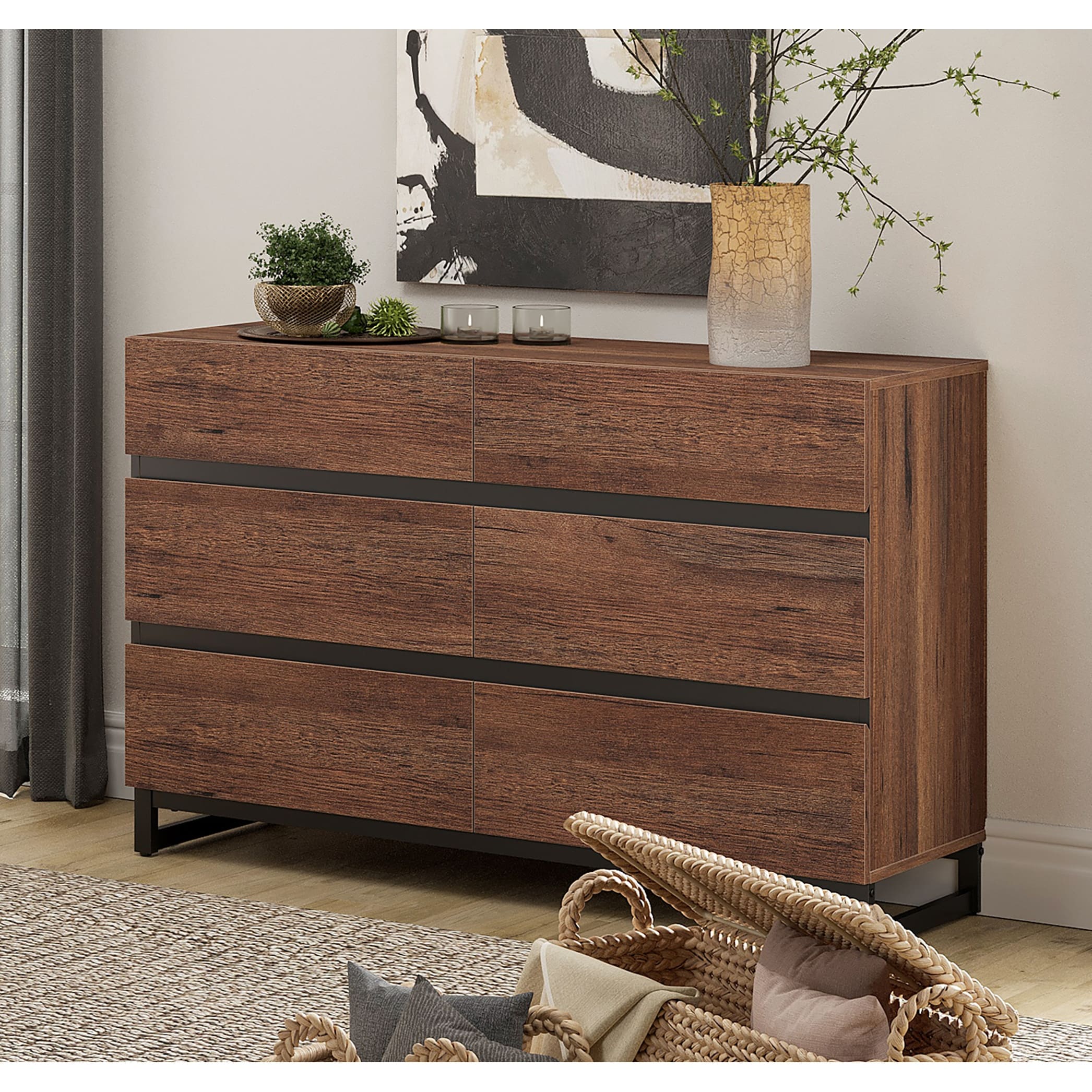 6-Drawer Wood Dresser - Wide Storage Cabinet for Bedroom