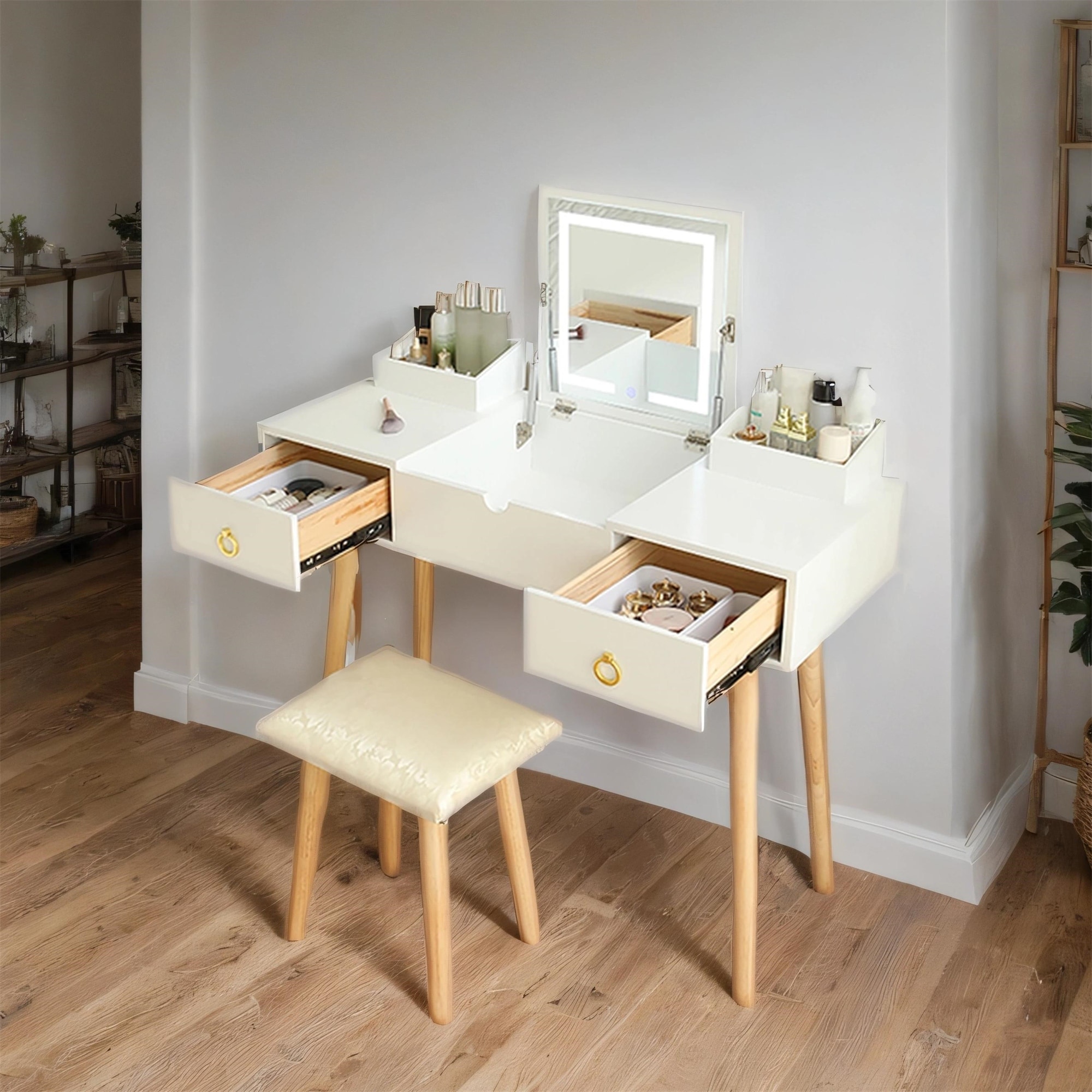 Vanity Set with LED Lighted Mirror and Power Outlet,Drawer for Bedroom