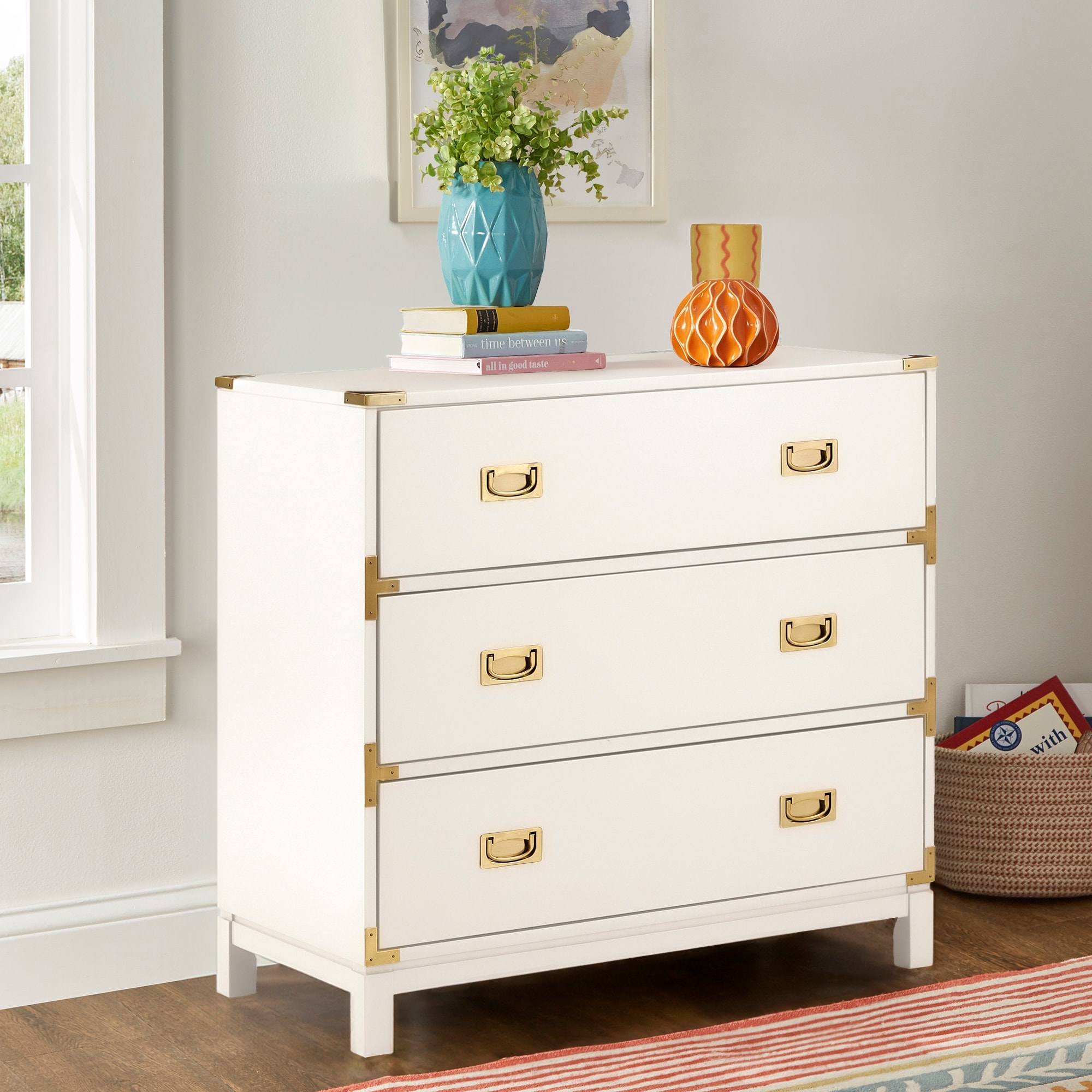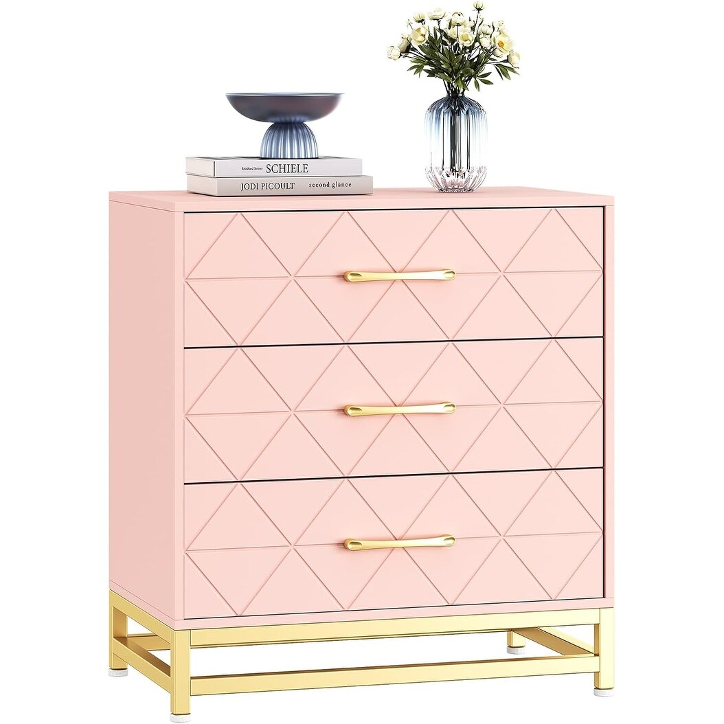 3 Drawer Dresser with Golden Handles, Modern Wood Chest of Drawers