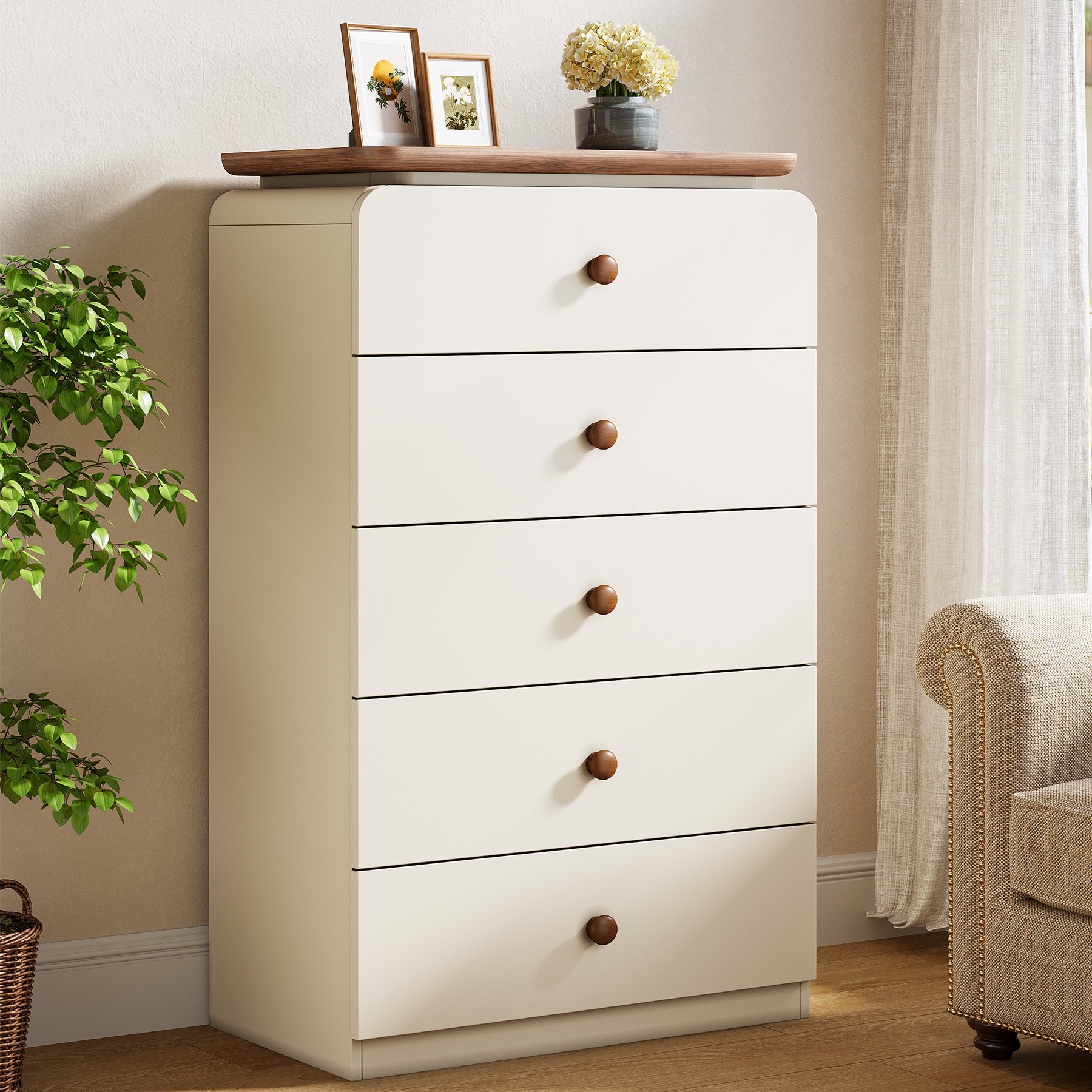 5 Drawers Chest, 45-Inch Tall Farmhouse White Storage Cabinet