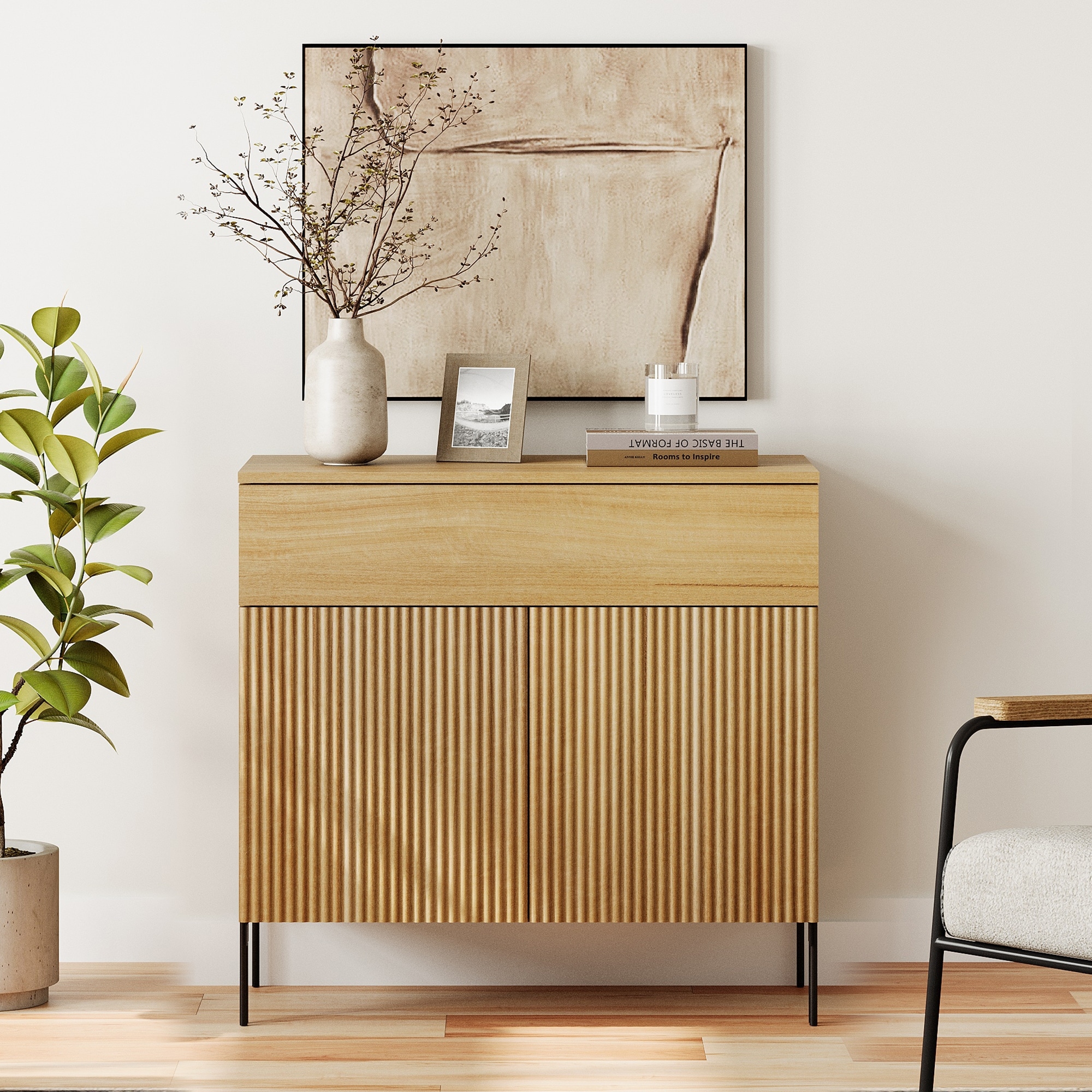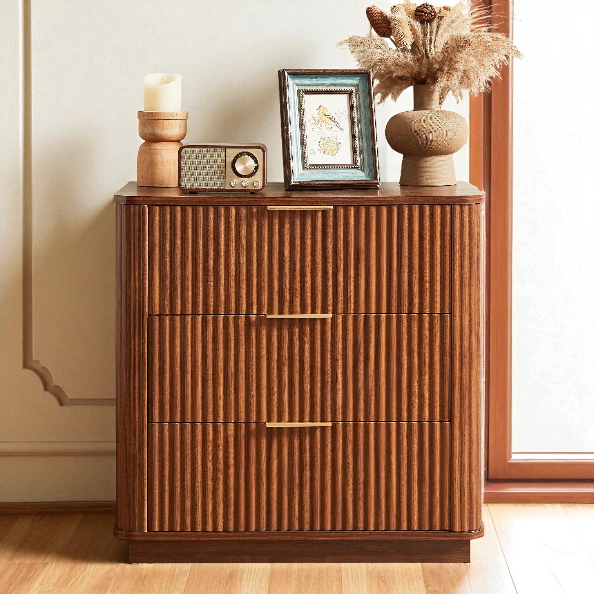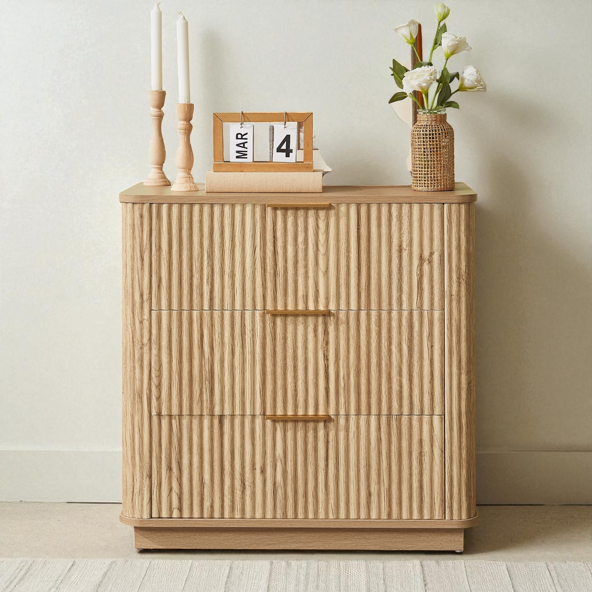 Modern Wood 31.5" Dresser With Reeded Design, Minimalist Dresser Organizer Storage