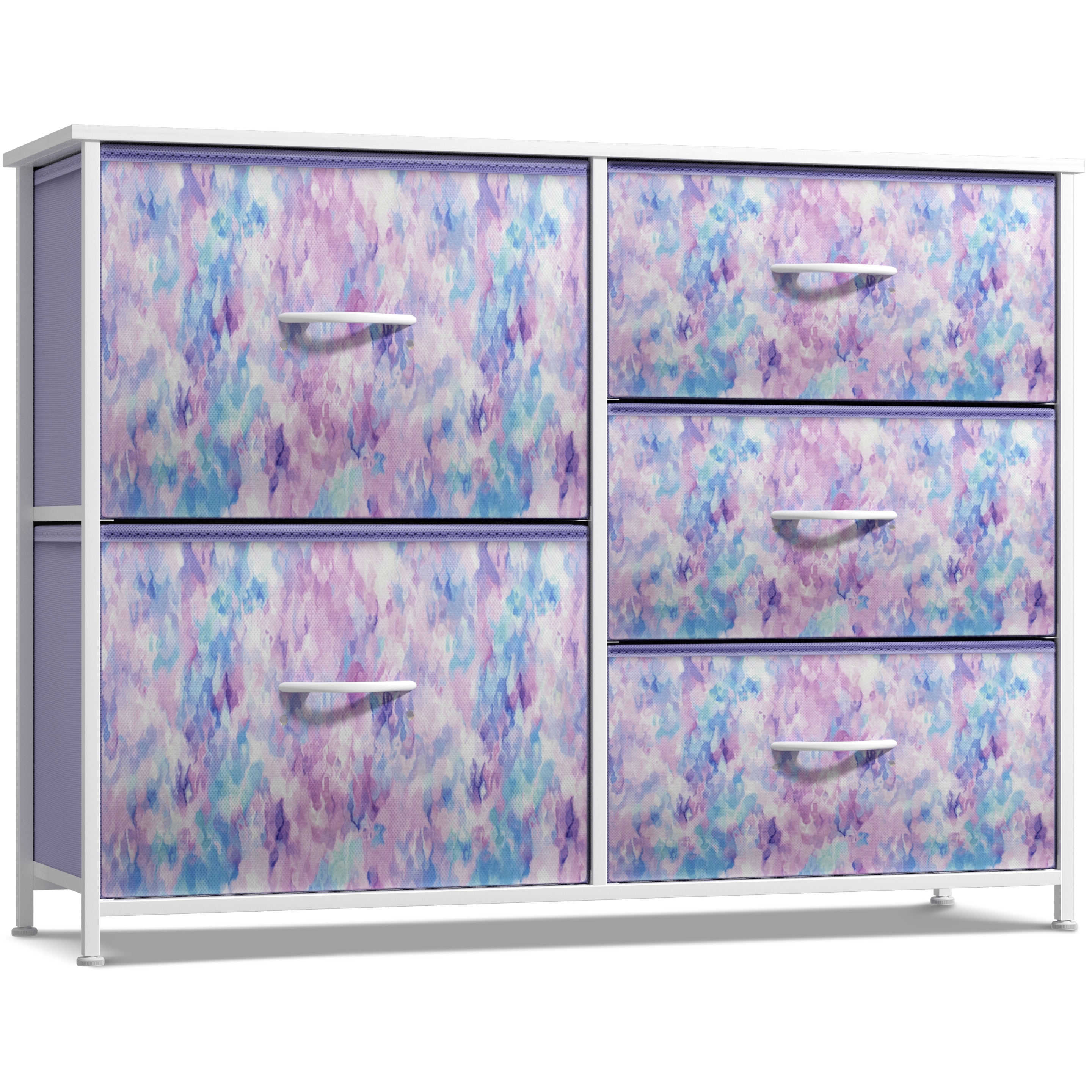 5 Drawer Bedroom Chest Dresser and TV Stand, Pastel Collection