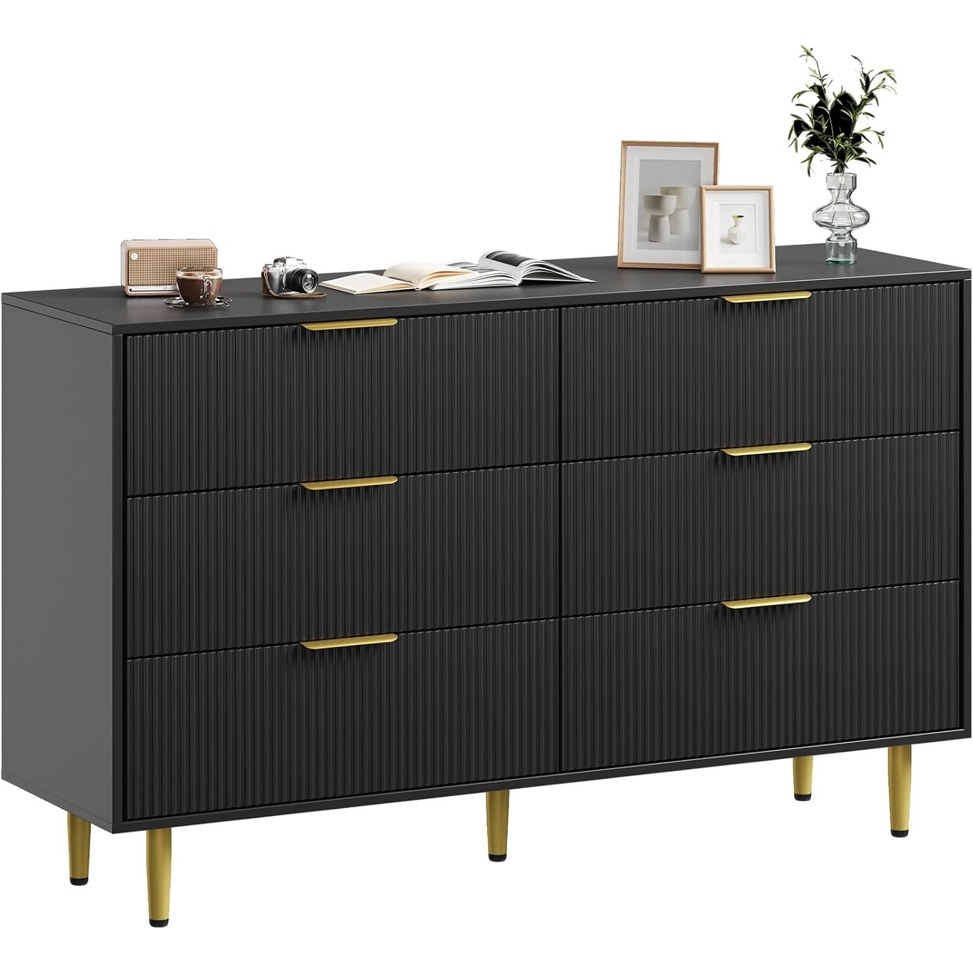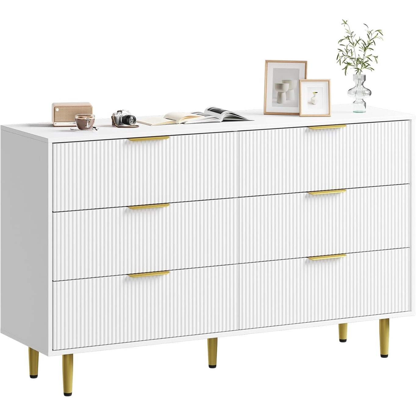 Fluted Dresser for Bedroom with 3/5/6 Drawers, Wooden Chest of Drawers with Metal Handle & Feet