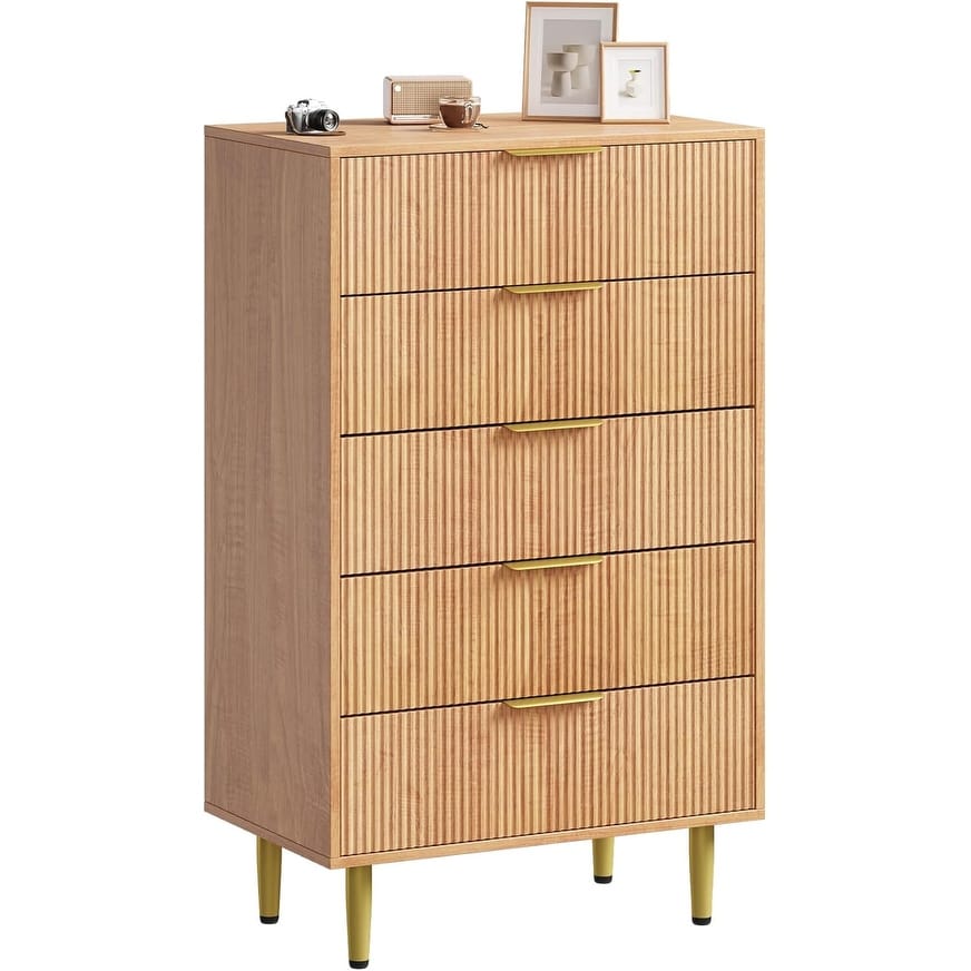 Fluted Dresser for Bedroom with 3/5/6 Drawers, Wooden Chest of Drawers with Metal Handle & Feet