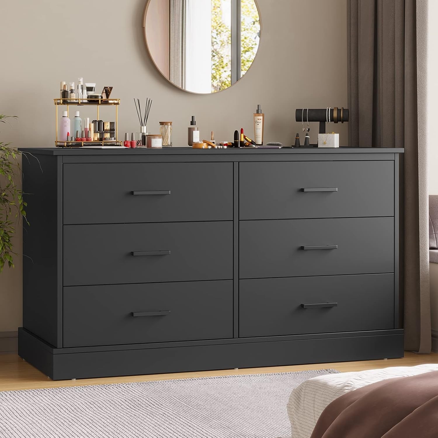 6 Drawer Double Dresser for Bedroom, Wood Storage Tower, Wide Chest of Drawers, Large Storage Cabinet with Sturdy Base