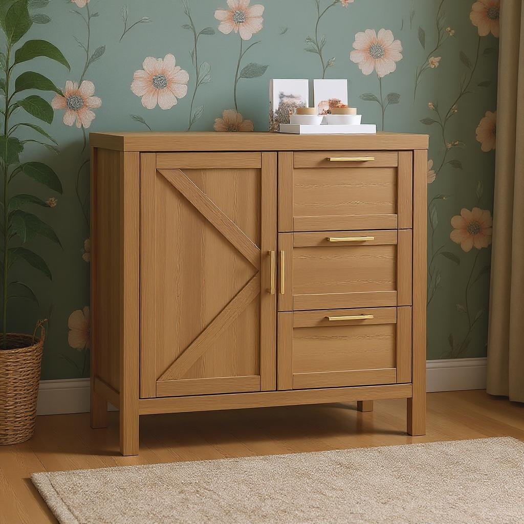 Modern Chest of Drawers with Natural Texture, Curved Profile Design, Dresser TV Stand, Wood Drawer Organizer for Bedroom