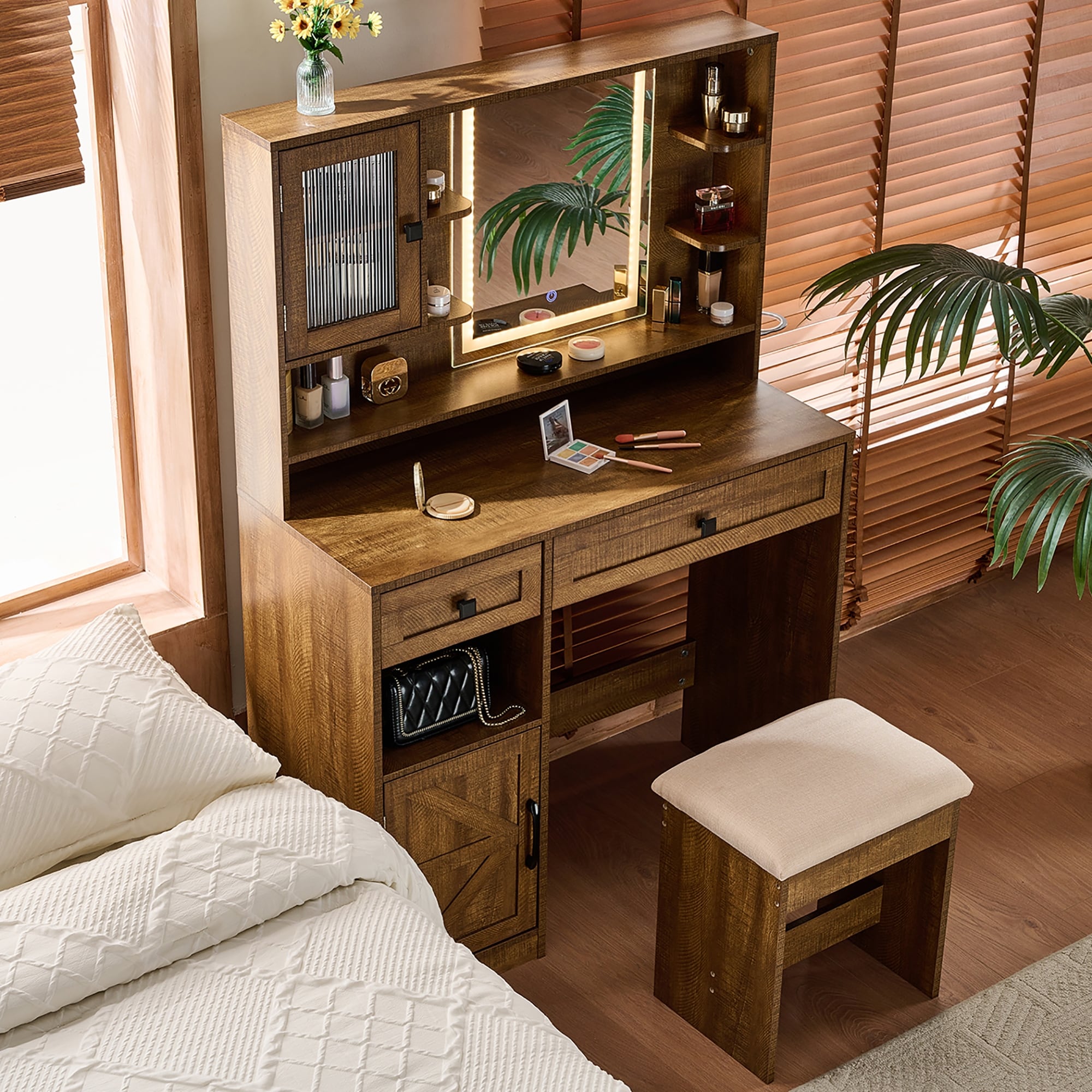 43.4"Makeup Vanity with LED Light Mirror and Brightness Adjustable
