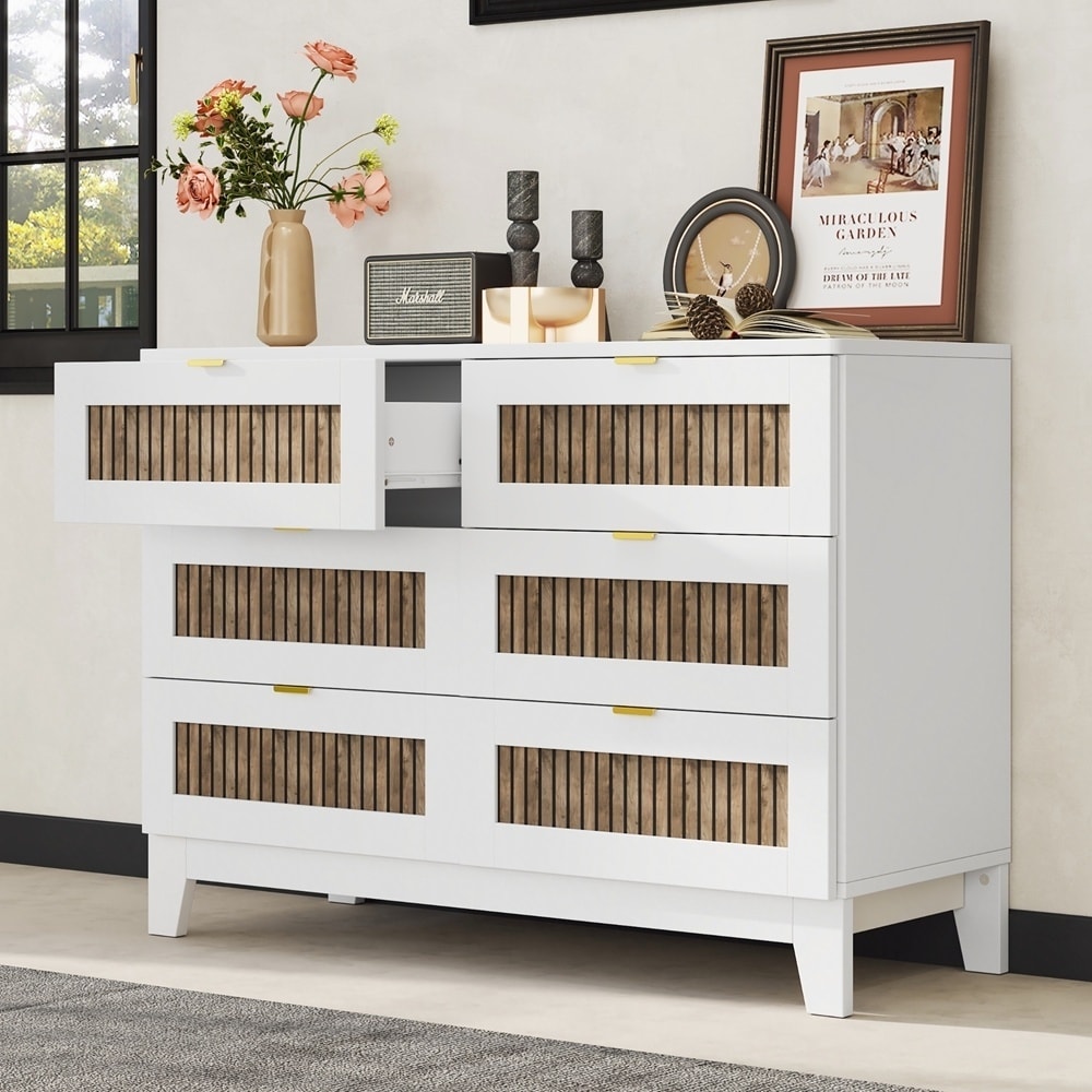 6/3 Drawer Dresser for Bedroom, 47 in Wood Chest of Drawers, Compact Nursery Dresser