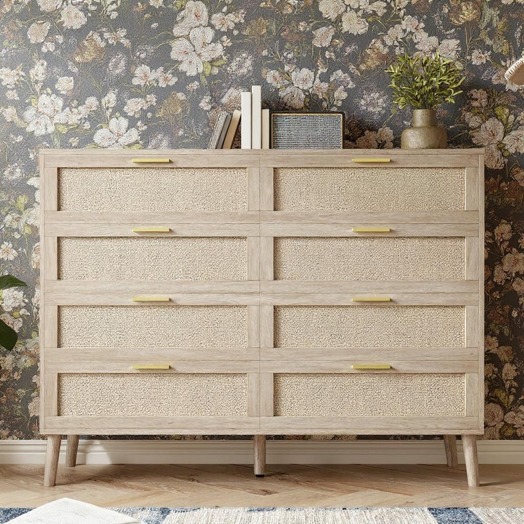 Fluted 8 Drawer Double Dresser for Bedroom, Living Room, Hallway