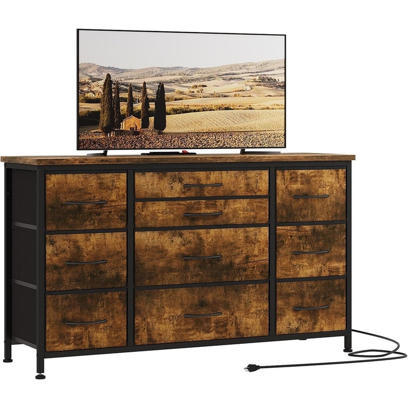10 Drawer Dresser, TV Stand, Charging Station, Entertainment Cabinet