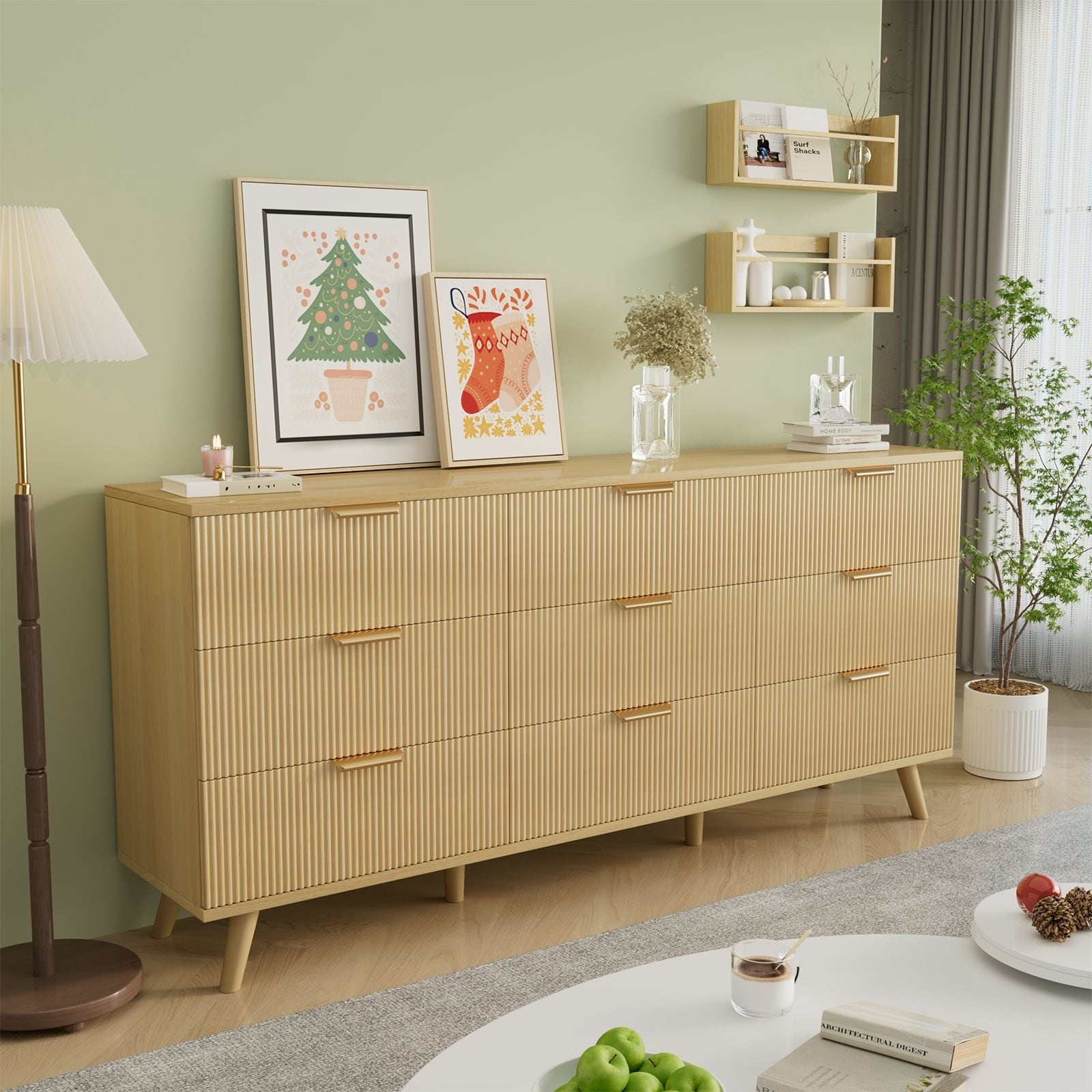 Gymojoy 9 Drawer Dresser, 63" Wide Fluted Wood Chest of Drawers with Gold Handles, Modern Storage Organizer for Closet