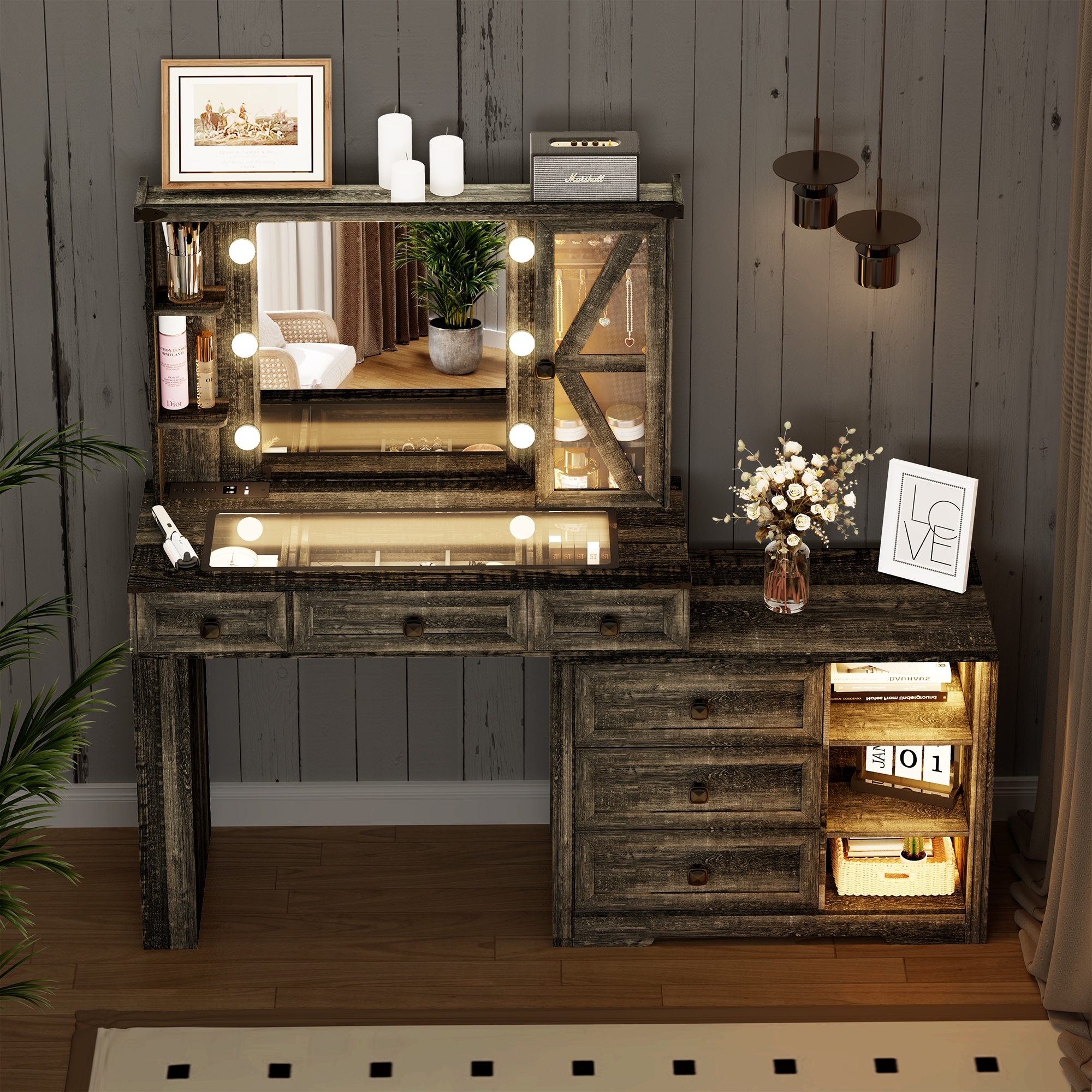 Vanity Desk with Mirror and Lights
