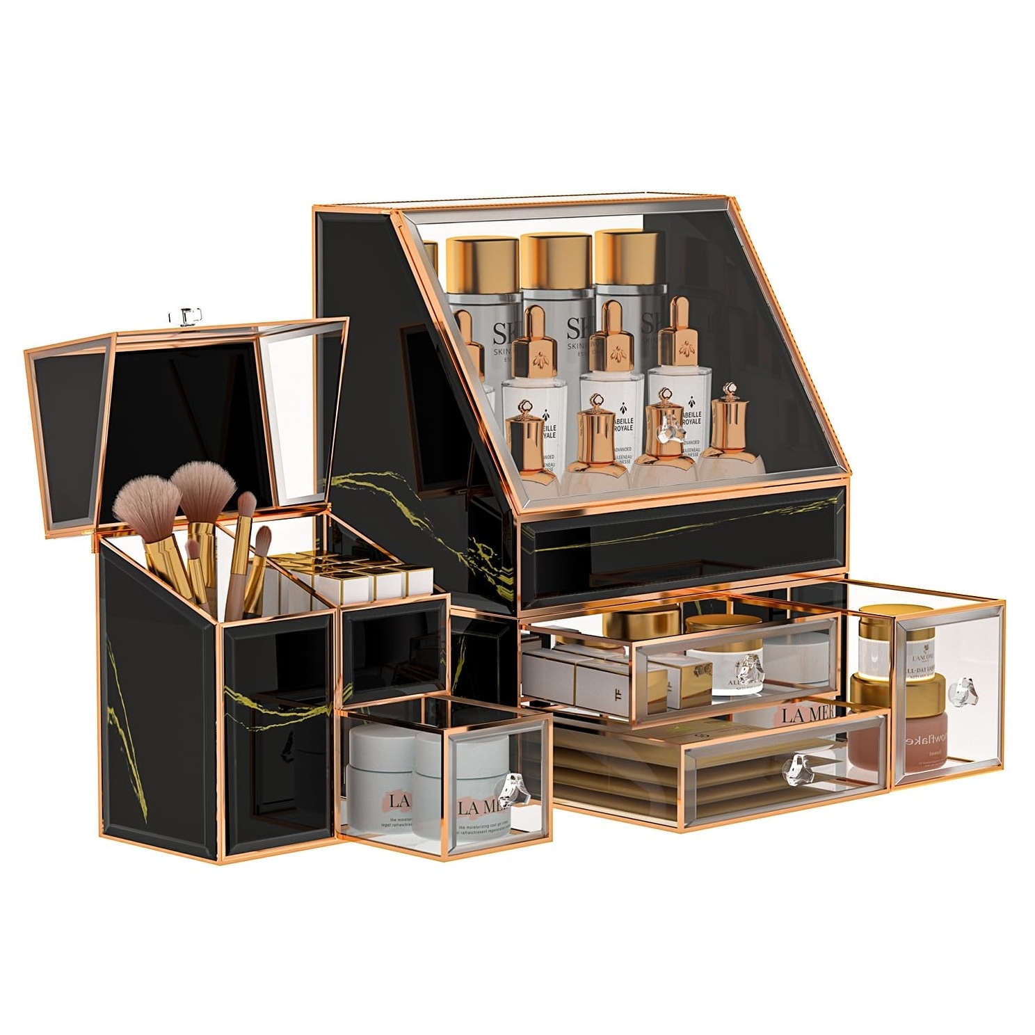 Makeup Organizer For Vanity,Cosmetics Organizer,Large Makeup Organizer With Drawers,High Hardness Glass Make Up Organizers