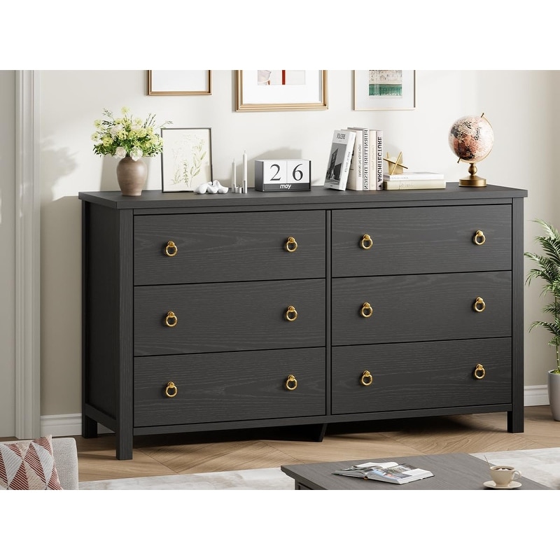 6 Drawer Dresser for Bedroom, Modern Double Dresser Organizer with Storage Drawers